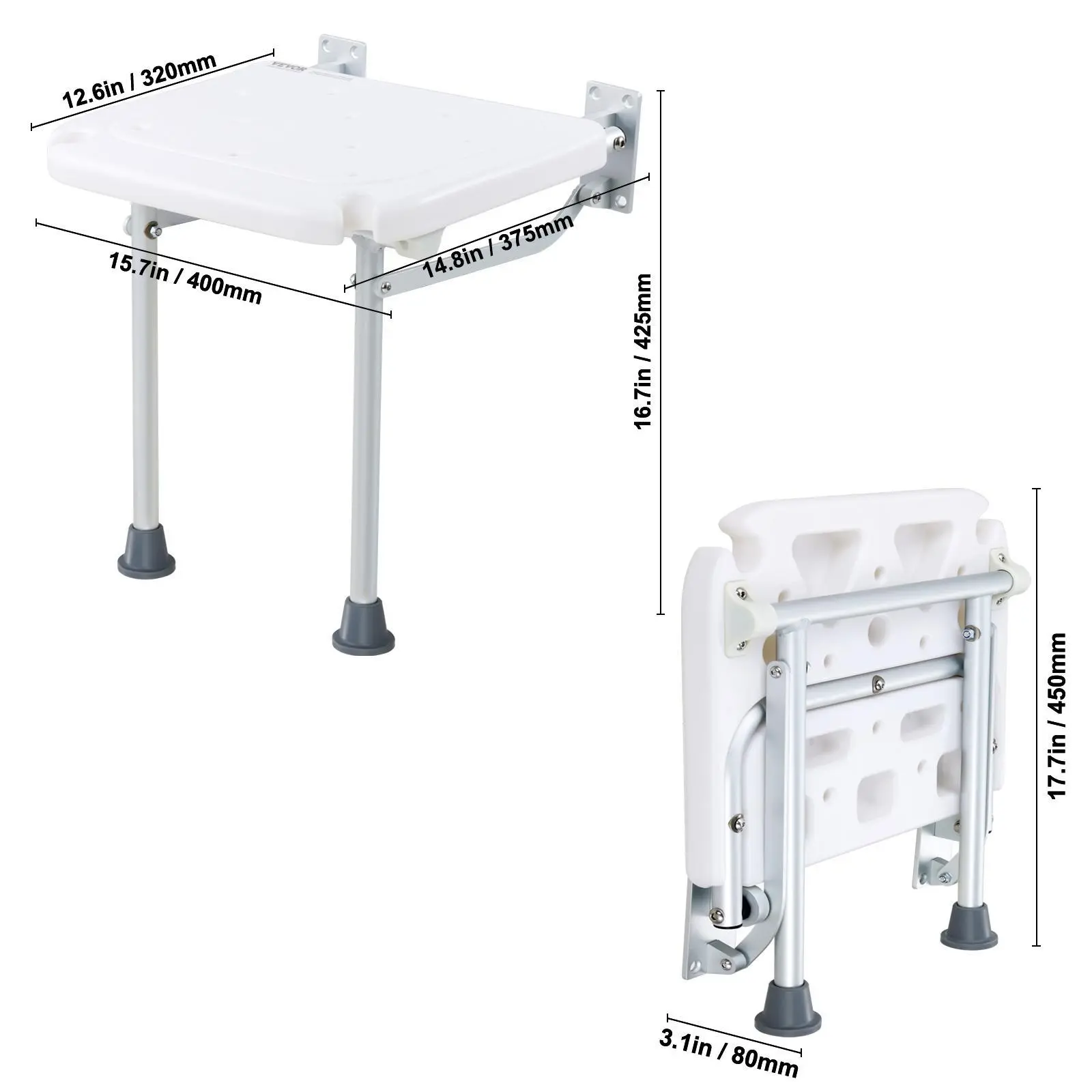 • 16-Inch, Dual Leg Support: Featuring two support legs with non-slip foot pads, our wall mounted shower seat ensures enhanced load-bearing capacity, supporting up to 500 lbs/226.8 kg with steadfast stability. Designed to accommodate individuals of all ages and mobility levels – from seniors and pregnant women to children and people with limited mobility.