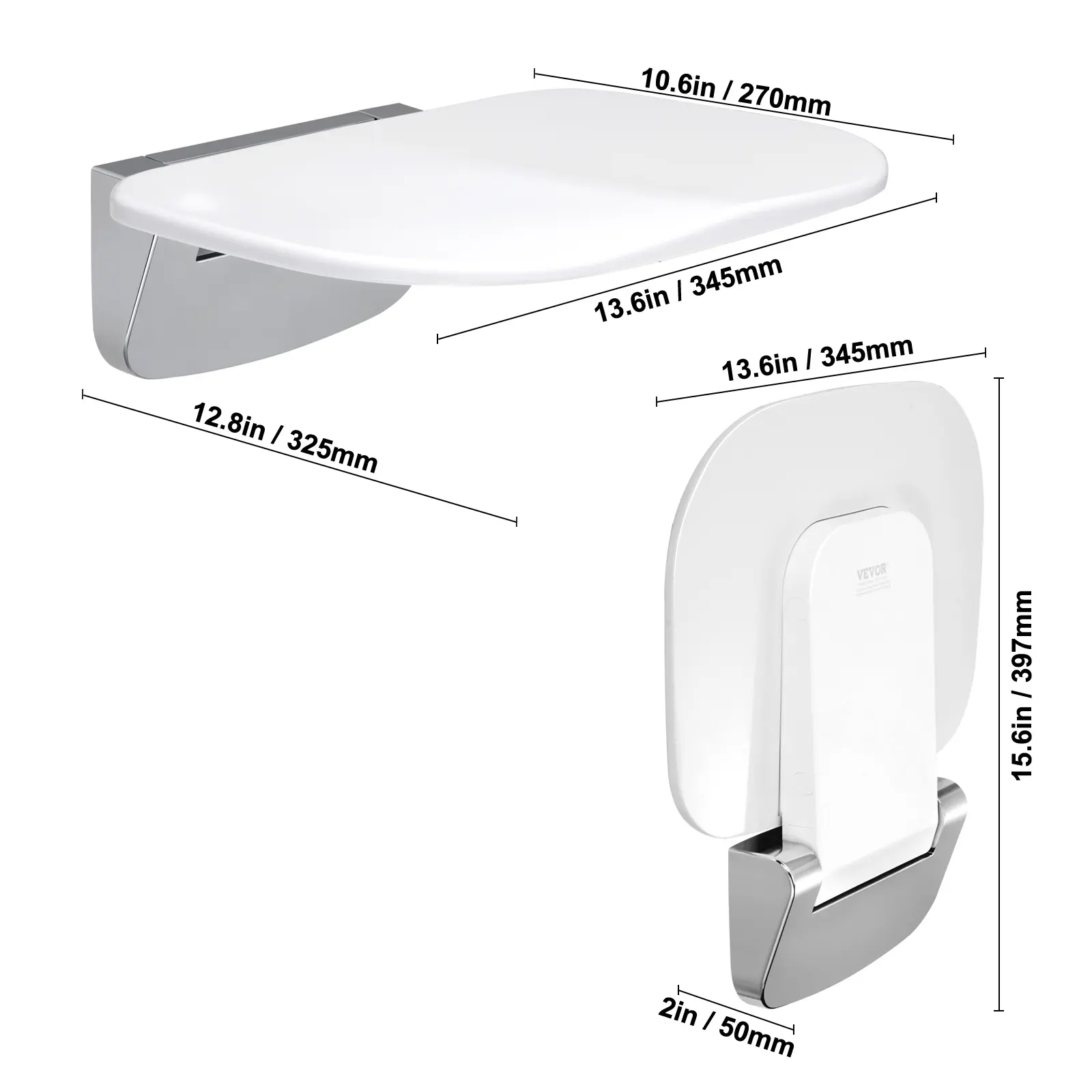 5. VEVOR Urea-formaldehyde Folding Shower Seat, 13.6'' x 12.8'' Unfolded, Wall Mounted Fold Up Shower Bench with 450 lbs Load Capacity, Space Saving Fold Down Shower Chair for Seniors Children Adults Minimalist Set