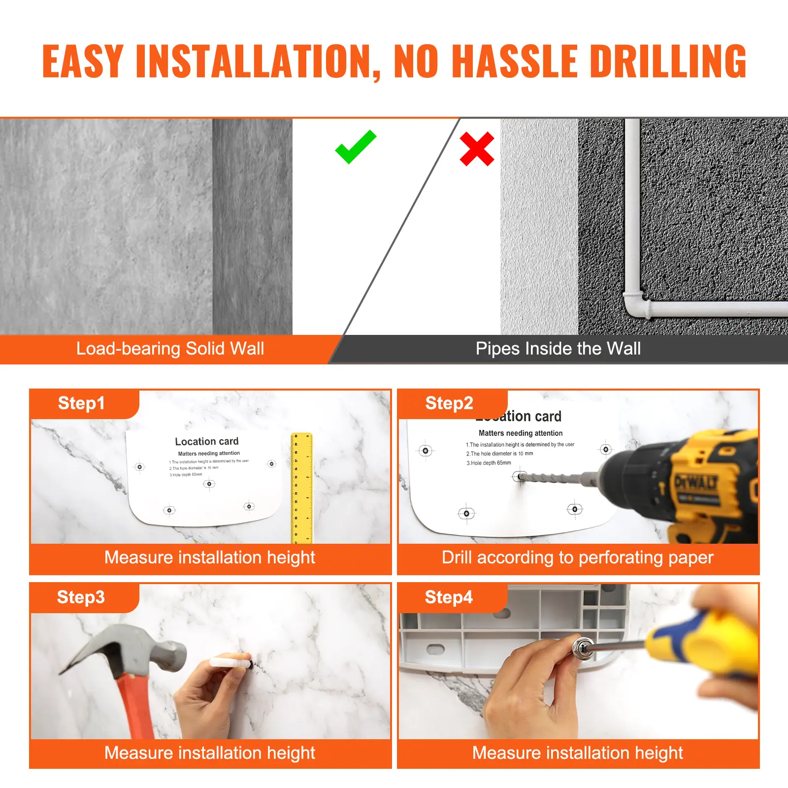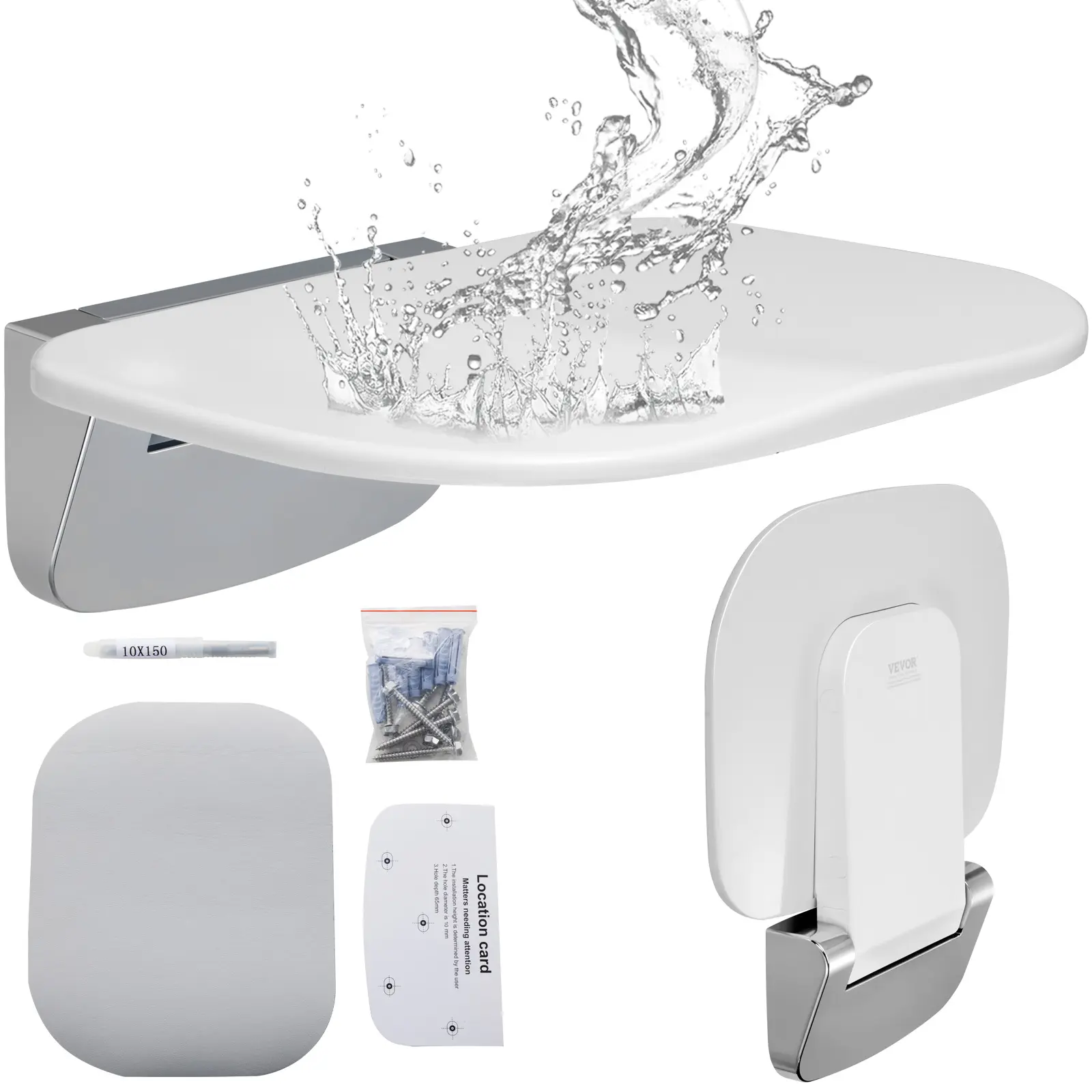 • Drill-Hole Wall Mounting: Thoughtfully equipped with mounting hole guiding sticker for precise drilling – no need for additional markings with a pen. Complete with bolt cap, 304 stainless steel screws, and an extra set of 2 stainless steel screws and bolt caps for added convenience. Note: Install our folding shower seat on load-bearing solid walls.