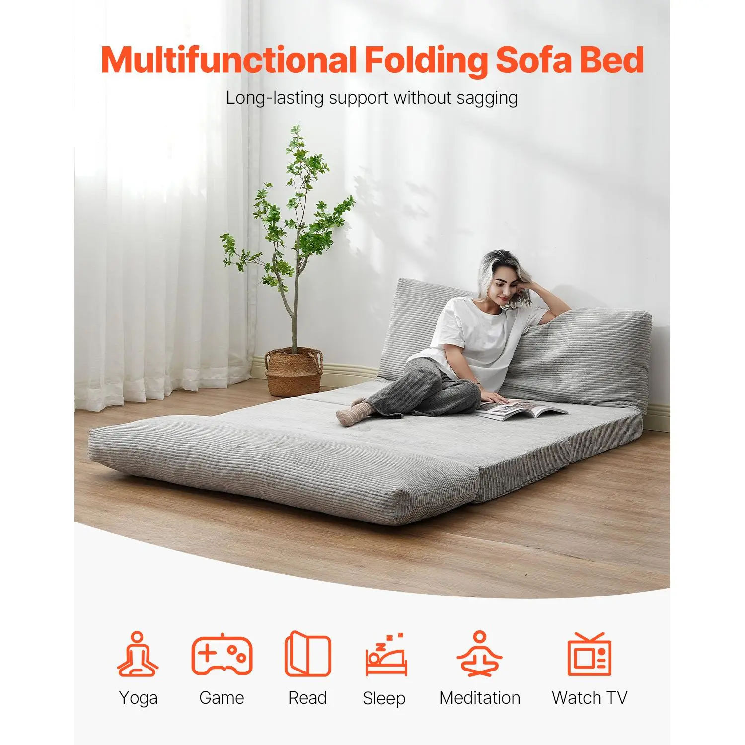 • Easy Folding: No complicated assembly needed—simply unfold it for use. When you're done, it easily folds up into a compact size for storage. This folding bed chair is designed to transition effortlessly between a sofa and a cushion, saving you time and space.