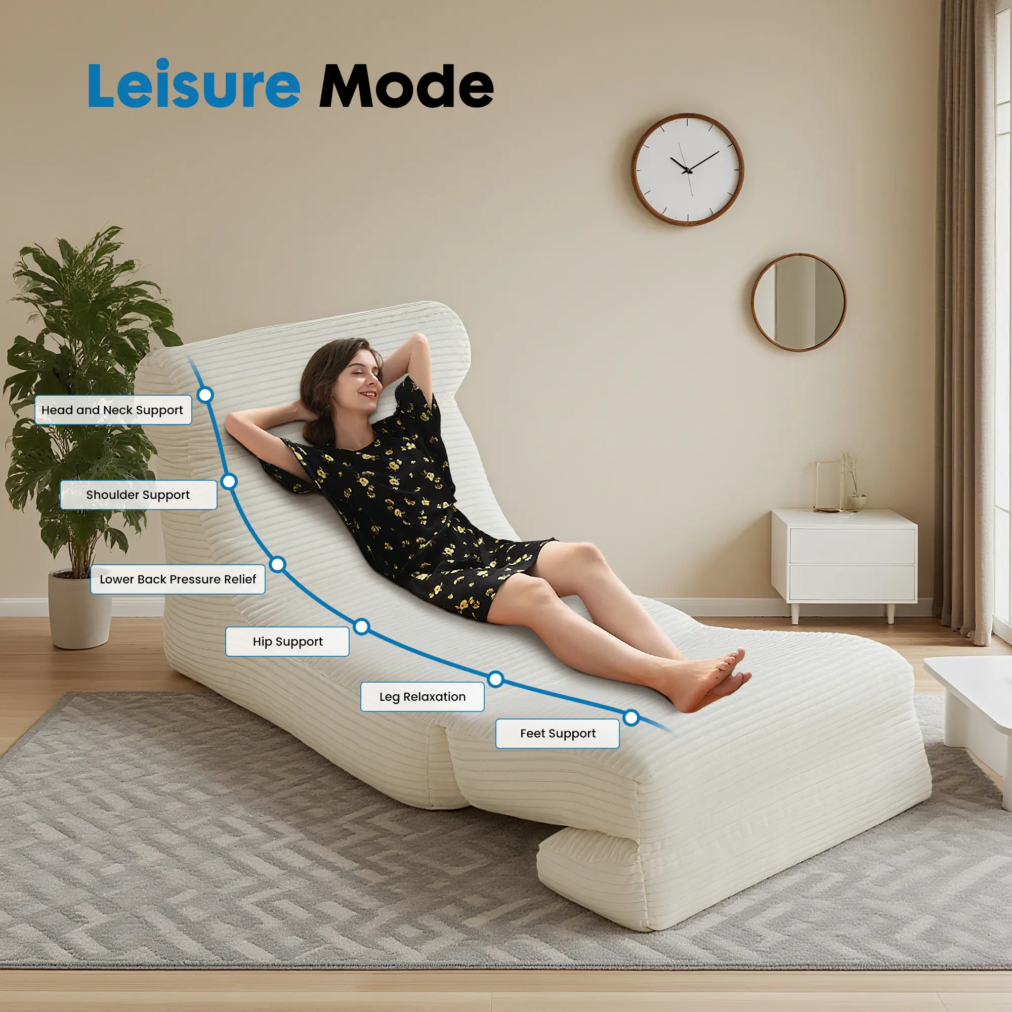 ·Headrest and Lumbar Pillow: The Headrest and Lumbar Pillow set is designed to provide superior comfort and support, offering a luxurious experience whether you're sitting or reclining. The headrest is designed with strap and buckle, ensuring a secure and stable attachment to the folding sofa, effectively preventing any unwanted shifting or displacement. The lumbar pillow supports the natural curve of your lower back, alleviating discomfort during extended periods of sitting