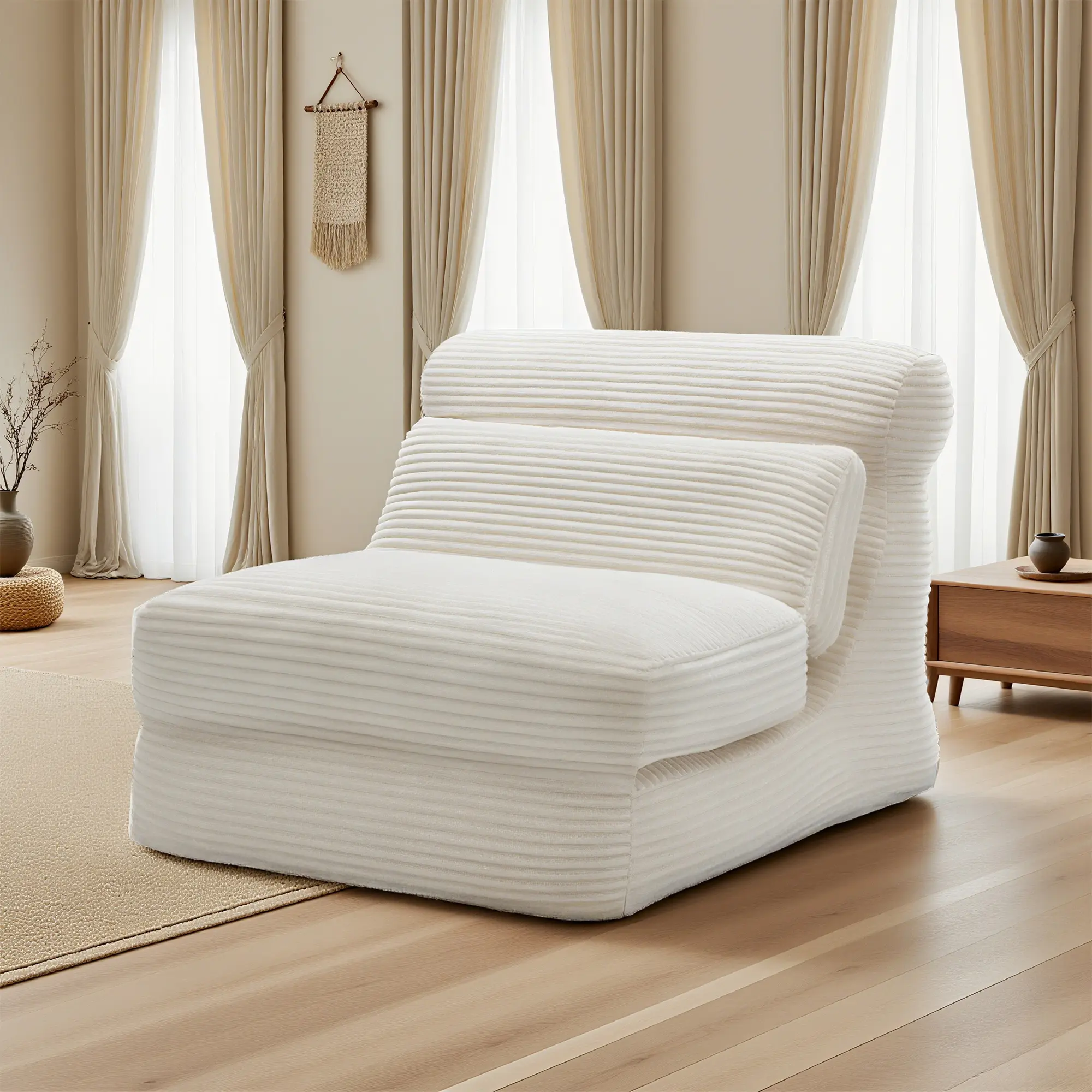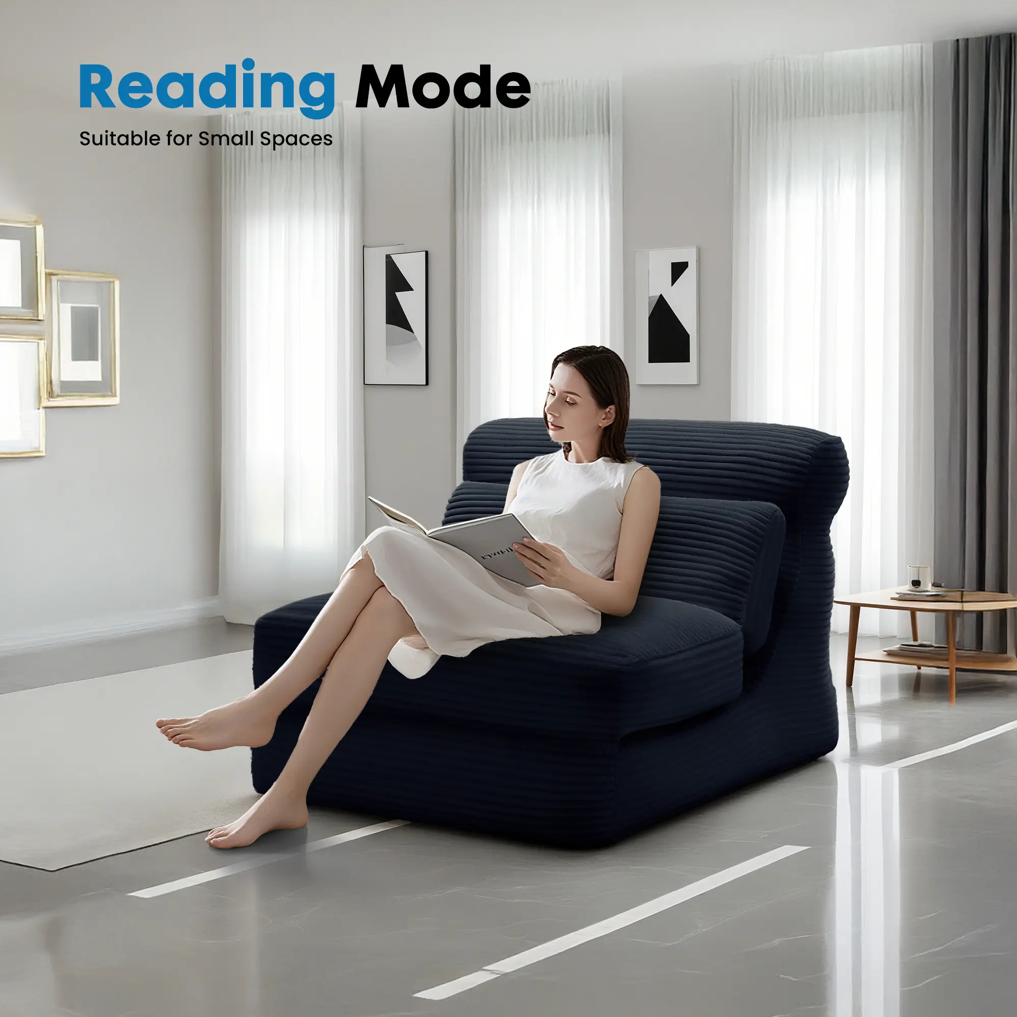 ·Important Note: The chair bed is compressed and vacuum-sealed to reduce space and carbon dioxide emissions during shipping. Upon unpacking, allow the sofa bed to breathe for 48 hours to regain its original shape and size