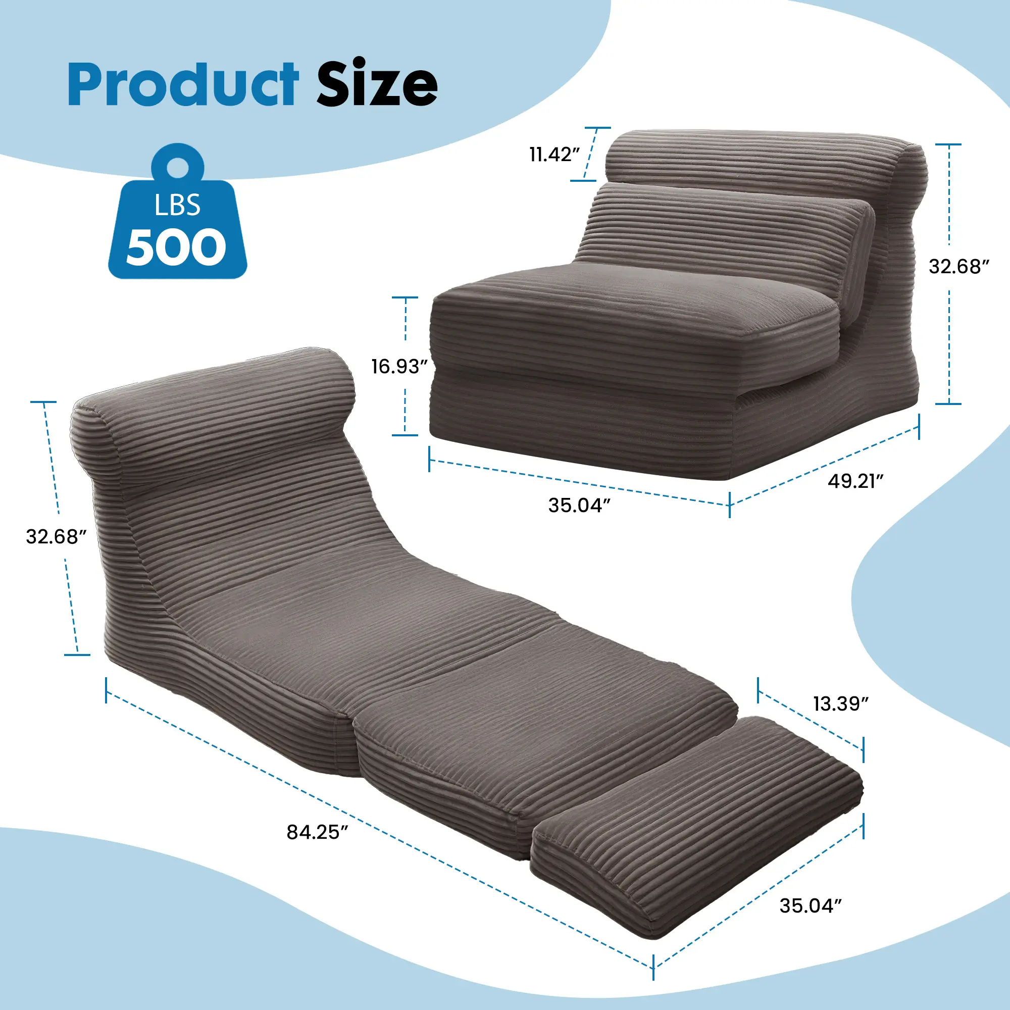 ·Durable Fabric: Crafted from premium corded fabric, this material offers a unique visual and tactile experience, elevating the ambiance of your living space. The size of the folding sofa bed is about 33.5"x74.8", which would be tailored to provide comfortable seating or bed for one person