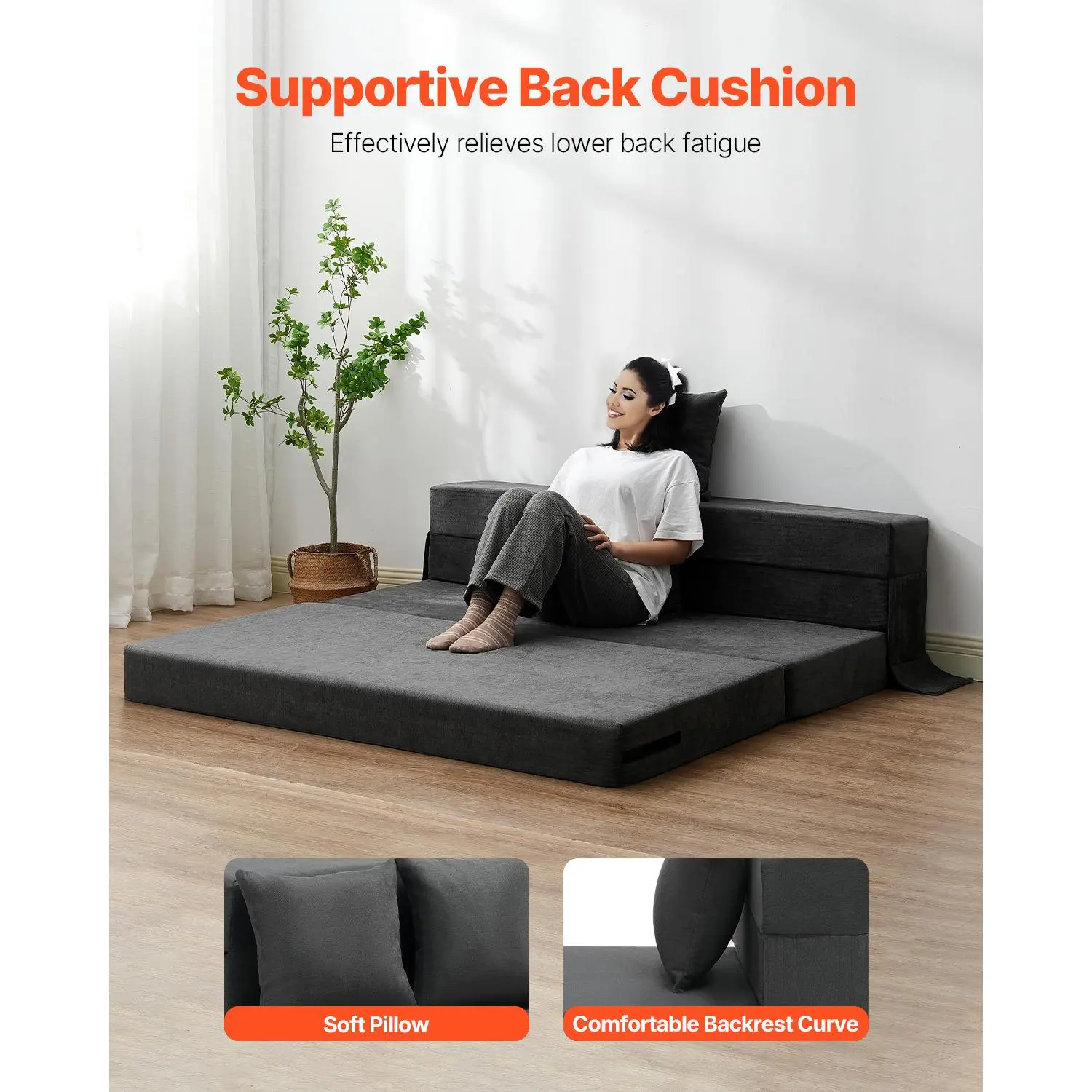 • Thoughtful Support: The ergonomic backrest is designed to fit the natural curve of your body, providing support where you need it most. Plus, the included lumbar pillow offers additional comfort, making this foldable sofa bed perfect for relaxing, working, or studying.