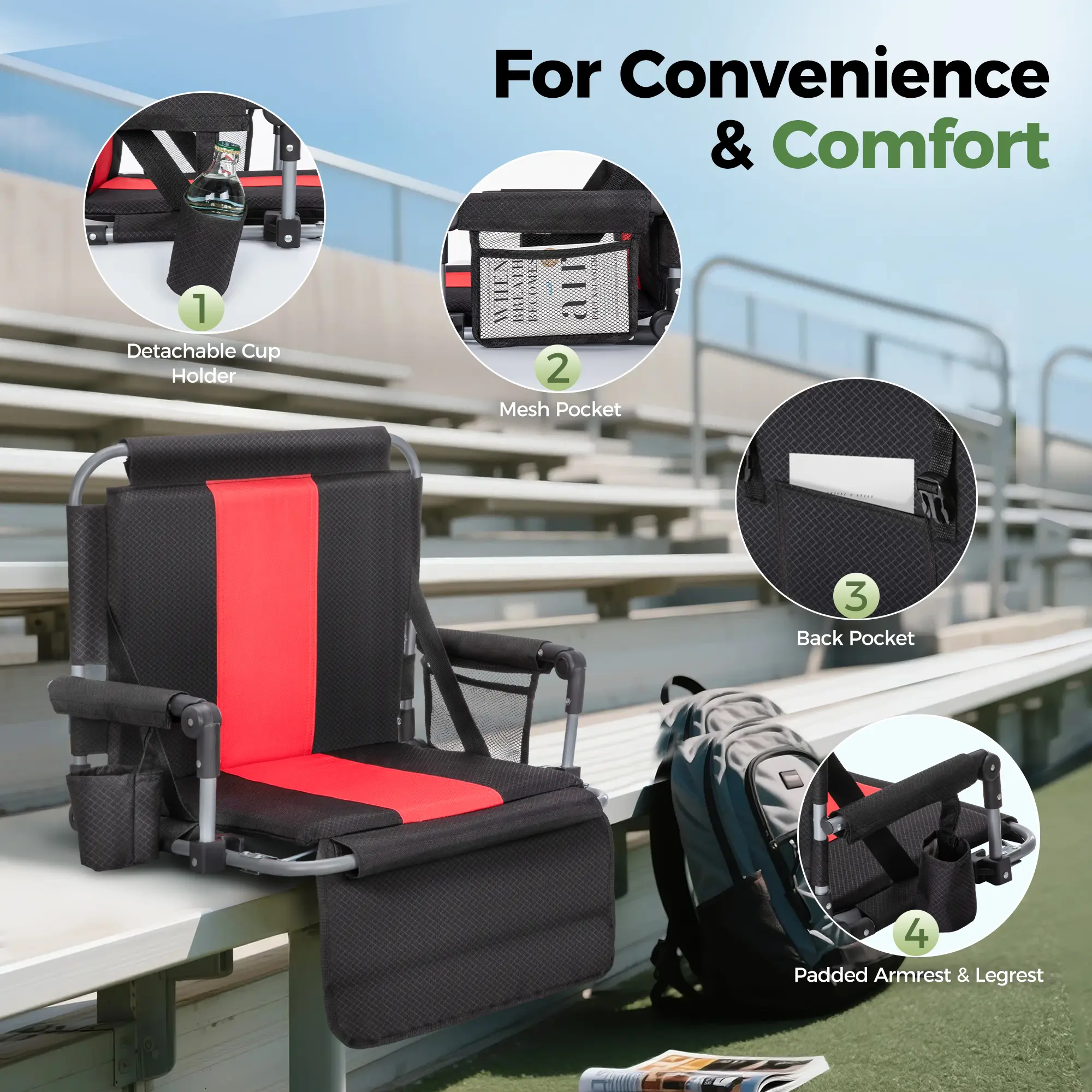 5. [live]Folding Stadium Seat Bleacher Chair with Cup Holder, Mesh Bag and Hide Hooks, Portable Stadium Chair with Back and Cushion