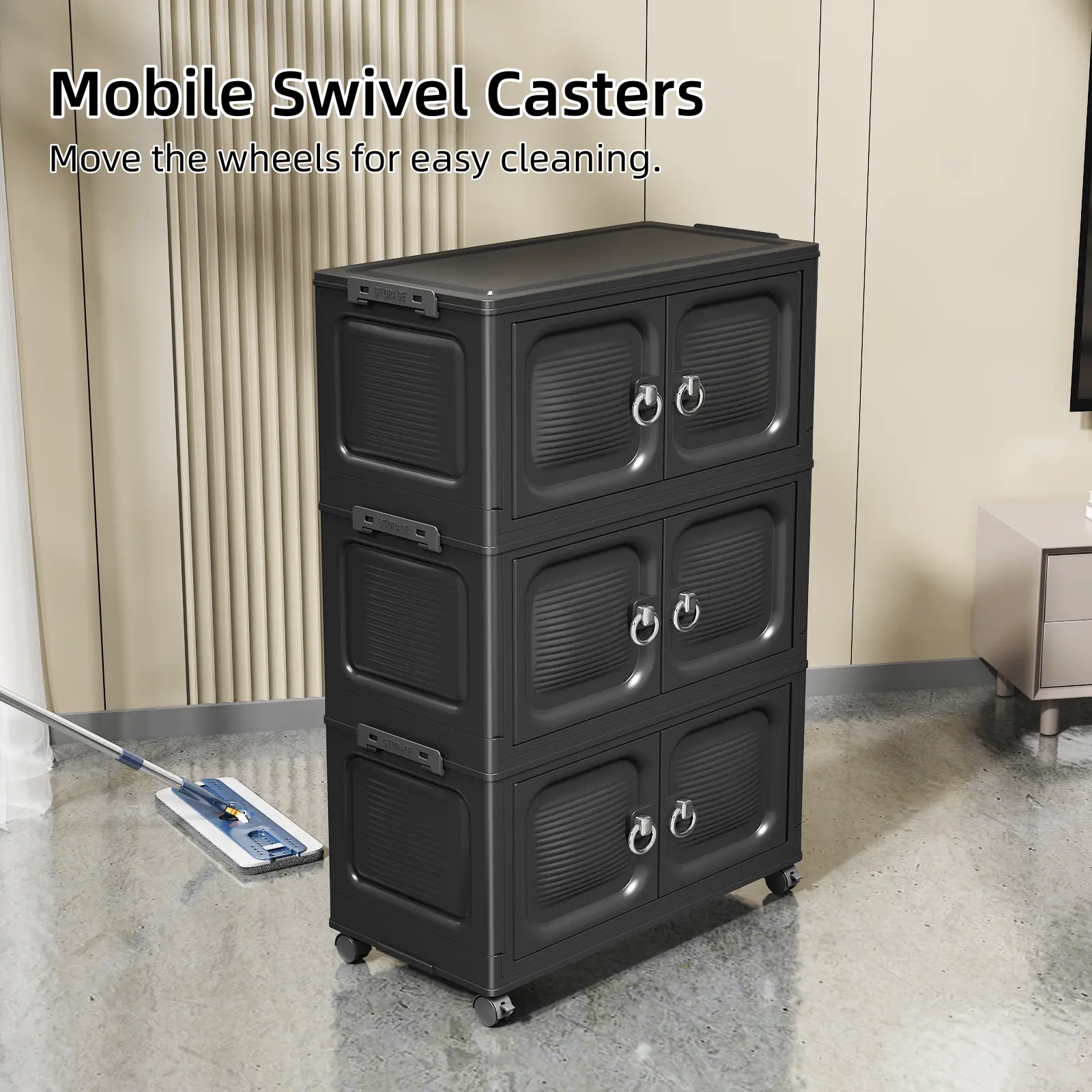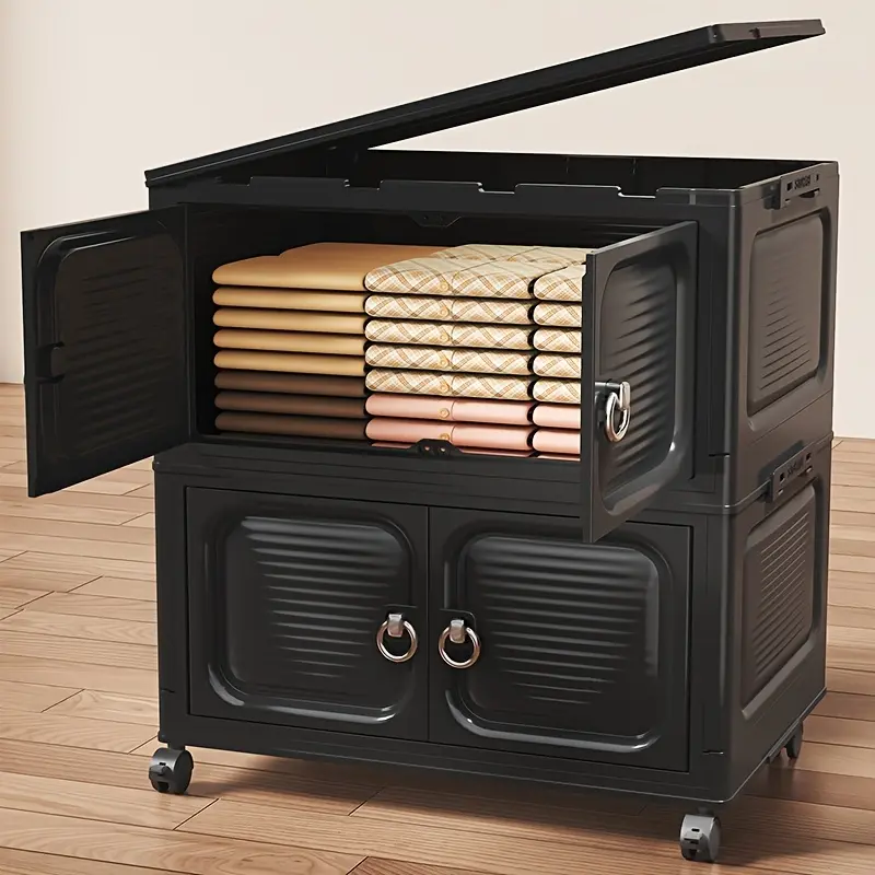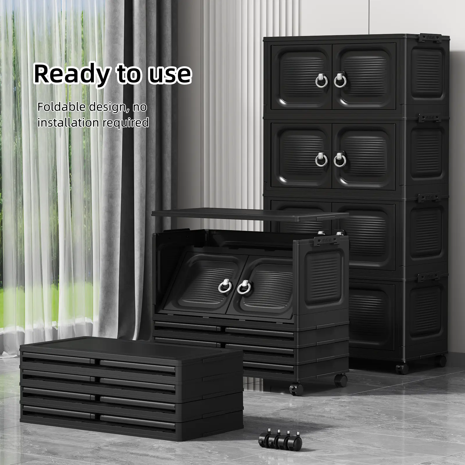 Increase the width2/3/4-Tier Multi-Functional Folding Storage Cabinet: Space-saving, easy to assemble, stackable, and comes with lids. Large capacity, ideal for living rooms, bedrooms, wardrobes, cabinets, offices, and dorm room organization and storage.