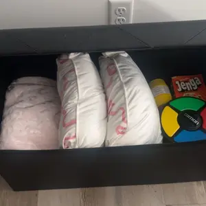 ·【Sufficient Storage Space】 This ottoman with storage, measuring 15"D x 15"H x 30''W / 43"W, is able to provide you with ample storage space of 35 gallons (154L). By inserting the center divider, you can store different items on two sides such as bedding, clothes, toys, books, snacks, etc. The divider also provides stronger support for the top.