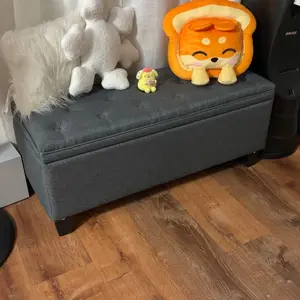 This storage bench combines modern style with practicality. It serves as a toy box, footrest stool, end-of-bed bench, or small coffee table. Enhance the atmosphere of your living room, bedroom, entryway, or study with its versatile design. It's a stylish addition to any room.