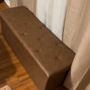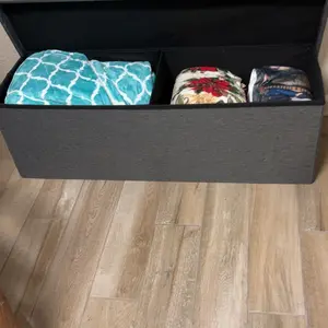 Measuring 15"D x 15"H x 30"W / 43"W, this ottoman provides 35 gallons (154L) of storage. The center divider allows for storing bedding, clothes, toys, books, and snacks on both sides. The divider offers additional support for the top, making it ideal for various items.
