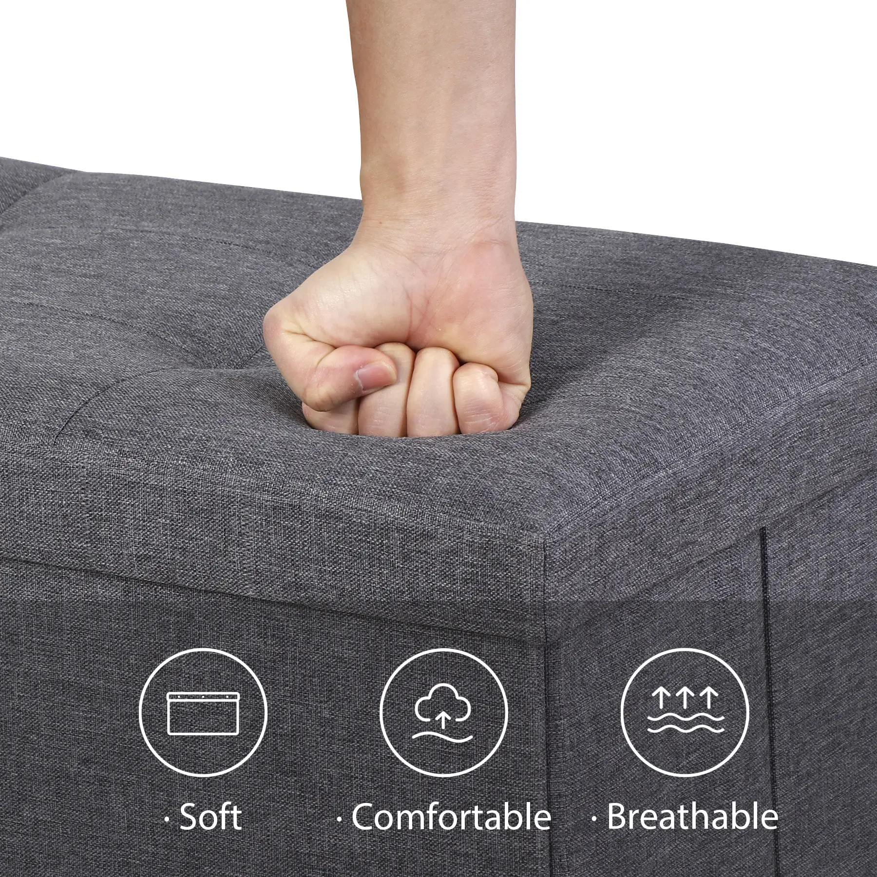 Upgrade your space with Zeny versatile storage ottoman! Crafted from high-quality thick fiberboard, it’s built to last, supporting up to 660lbs. The breathable linen fabric and thick padding ensure comfort, while soft corners keep your family safe. Use it as a footrest, extra seating, or a hidden storage solution with a spacious 120-liter capacity to declutter your home. Its collapsible design makes it easy to store when not in use, and the sleek gray finish seamlessly blends with any decor. Perfect for the living room, bedroom, or hallway, this ottoman combines durability, comfort, and style in one!