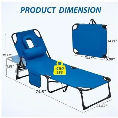 ·Face Hole Design for Comfortable Tanning Built with a face opening and soft support padding, this tanning chair allows you to lie face down comfortably while breathing freely. Perfect for sunbathing, reading, or using your phone without neck strain.