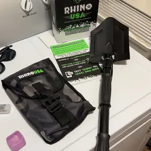 Discover the ultimate in versatility with the Rhino USA Folding Camping Shovel, a 3-in-1 multipurpose tool designed for all your outdoor needs. This compact and lightweight shovel extends to a full 23" but folds down to just 9" x 6" for easy storage in the included heavy-duty carry case, weighing only 2 lbs for effortless portability. Crafted from durable carbon steel with a black powder-coated finish, it combines strength and corrosion resistance for long-lasting performance. Equipped with a 180-degree shovel, 90-degree pickaxe, and 90-degree pick hoe, this rugged tool is perfect for digging, trenching, and other field tasks, making it an essential companion for camping, off-roading, and emergency situations.