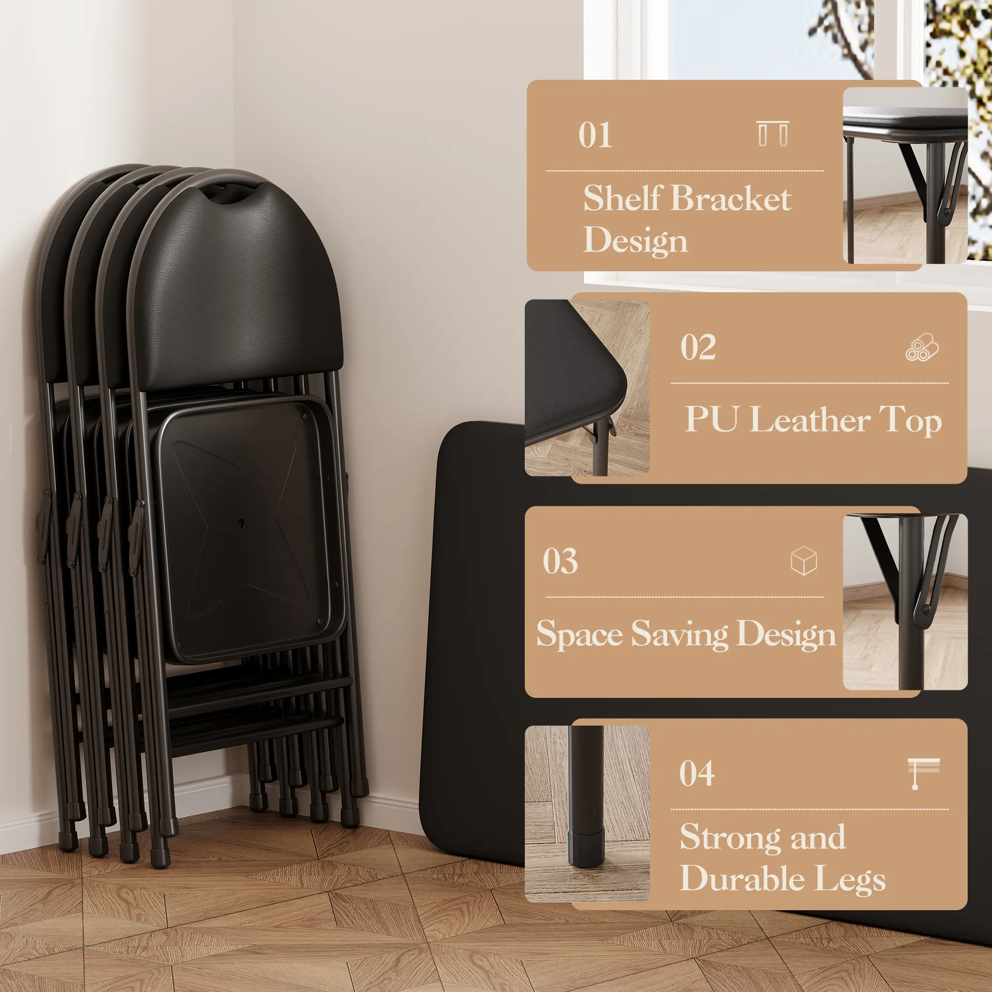 The elegant PU leather surface not only adds a touch of sophistication but is also easy to clean—just wipe it down to remove spills and stains.