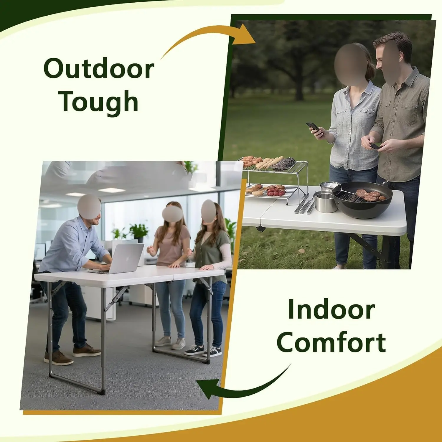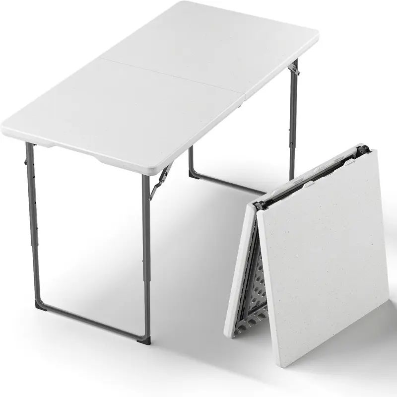 Folding Table, 4FT Foldable Picnic Table with Adjustable Height, Heavy Duty Fold-in-Half Portable Table for Weddings, Camping, RV Travel, Parties, BBQs, and Indoor Use, Easy to Fold and Store
