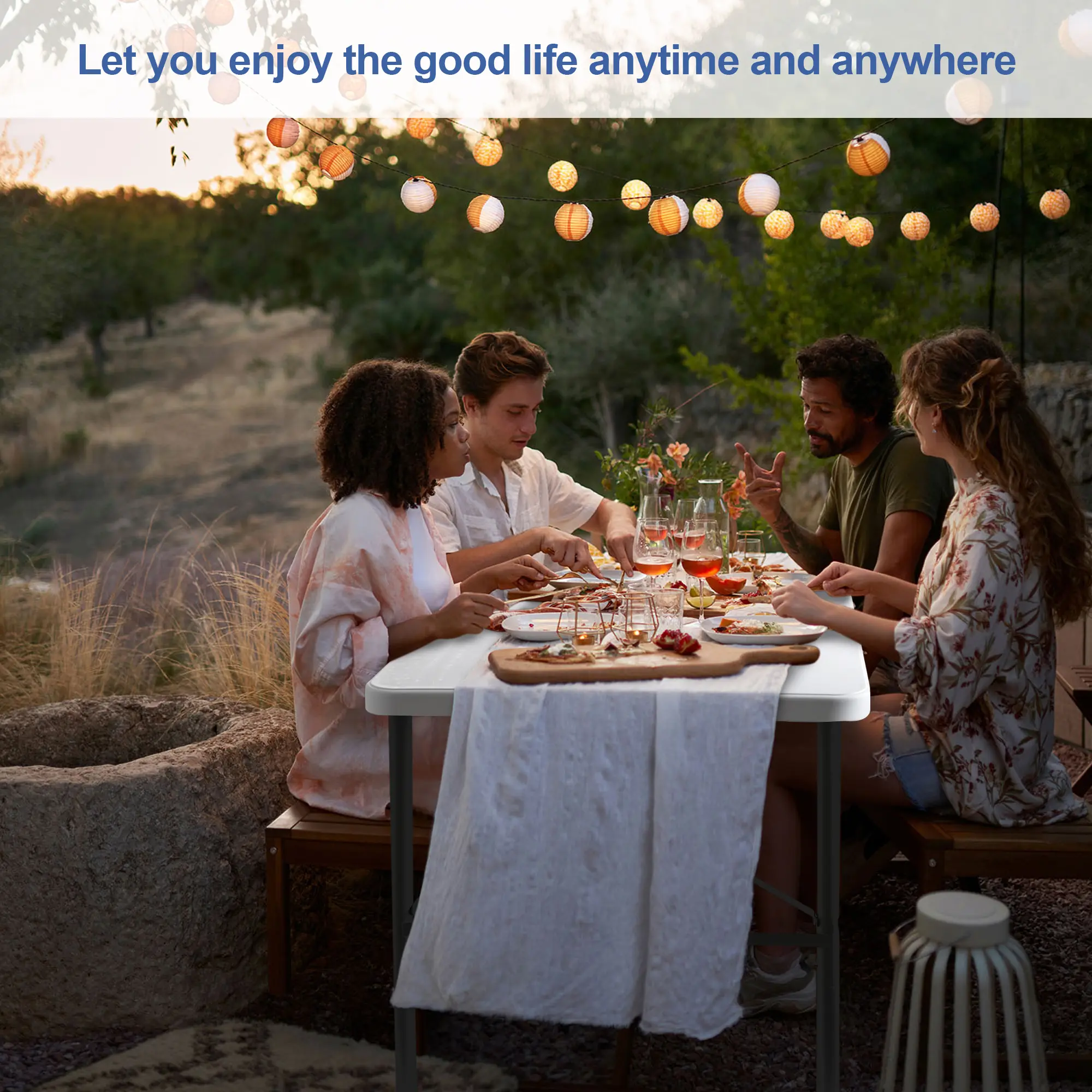 El tamaño es genial y la mejor de todo es que sirve para cualquier ocasión está mesa es fácil de serrar y abrir.