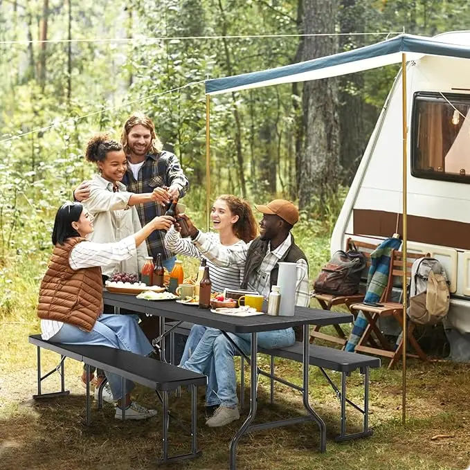 VINGLI 4/6/8 Foot Plastic Folding Table Portable Long Table for Indoor Outdoor Use Rectangular with Carrying Handle, Smooth HDPE Tabletop, White/Brown/BlackVINGLI 4/6/8 Foot Plastic Folding Table Portable Long Table for Indoor Outdoor Use Rectangular with Carrying Handle, Smooth HDPE Tabletop, White/Brown/Black