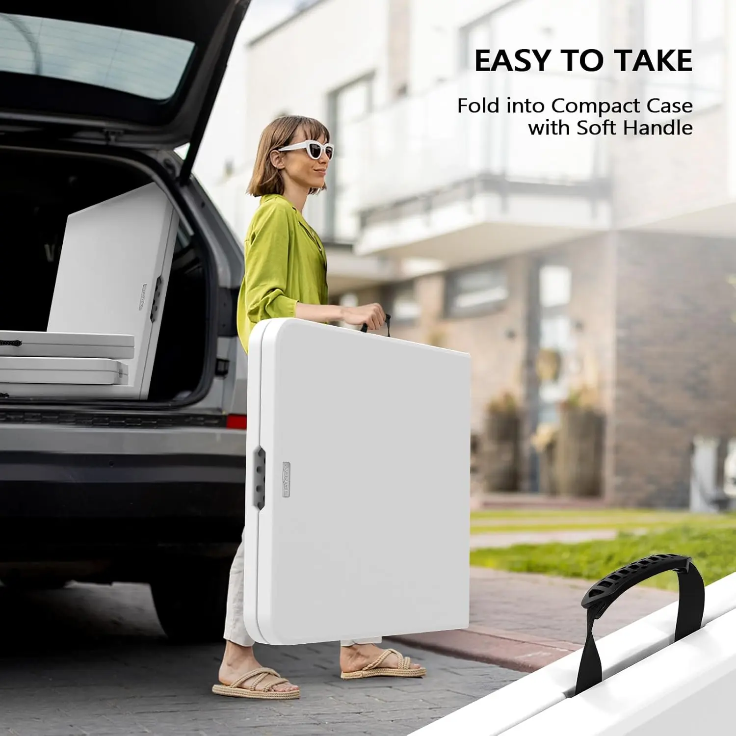 VINGLI 4/6/8 Foot Plastic Folding Table Portable Long Table for Indoor Outdoor Use Rectangular with Carrying Handle, Smooth HDPE Tabletop, White/Brown/Black