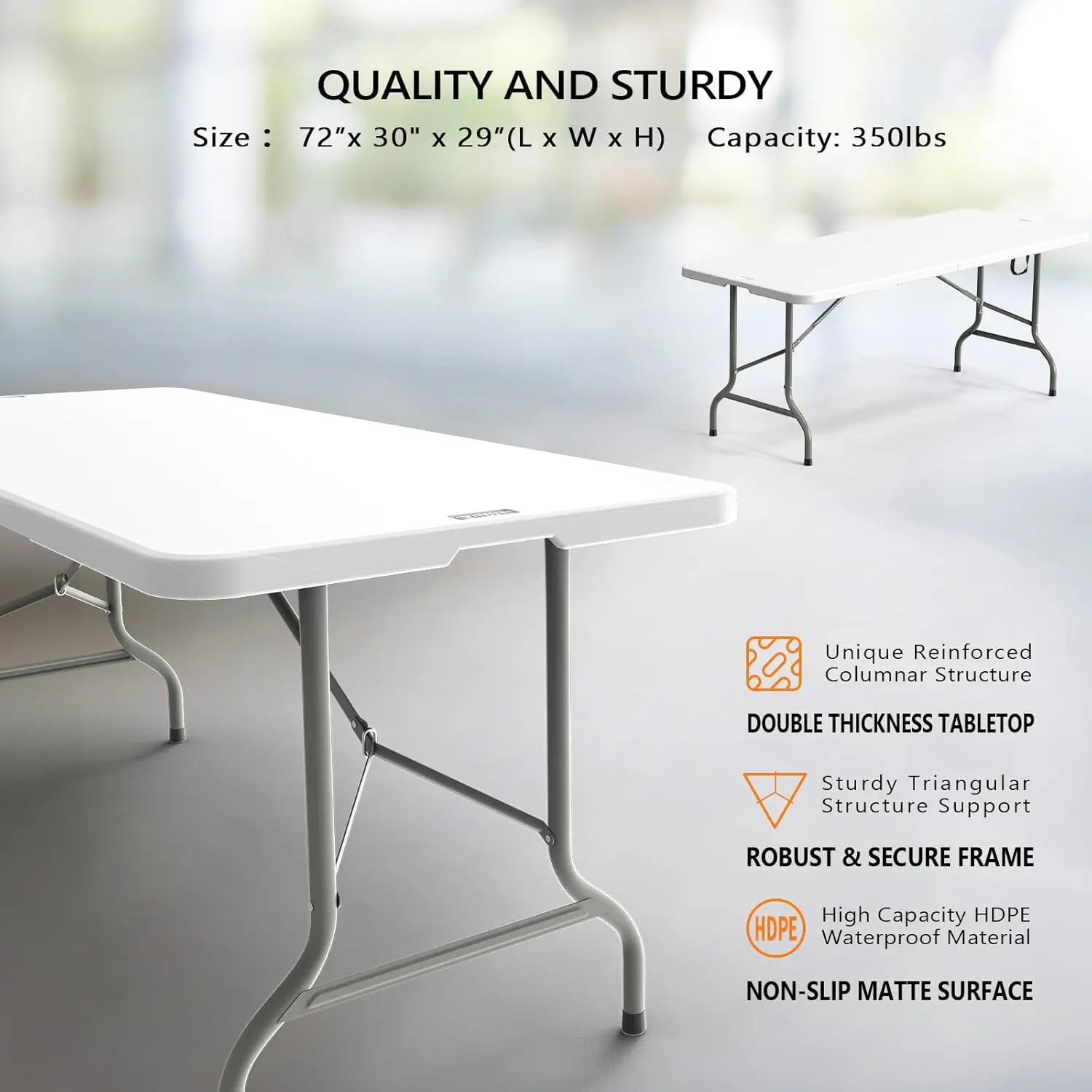 VINGLI 4/6/8 Foot Plastic Folding Table Portable Long Table for Indoor Outdoor Use Rectangular with Carrying Handle, Smooth HDPE Tabletop, White/Brown/BlackVINGLI 4/6/8 Foot Plastic Folding Table Portable Long Table for Indoor Outdoor Use Rectangular with Carrying Handle, Smooth HDPE Tabletop, White/Brown/BlackVINGLI 4/6/8 Foot Plastic Folding Table Portable Long Table for Indoor Outdoor Use Rectangular with Carrying Handle, Smooth HDPE Tabletop, White/Brown/BlackVINGLI 4/6/8 Foot Plastic Folding Table Portable Long Table for Indoor Outdoor Use Rectangular with Carrying Handle, Smooth HDPE Tabletop, White/Brown/Black