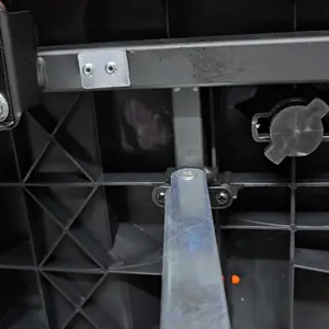 The tabletop is crafted from easy-to-clean and maintain plastic, complemented by heavy-duty aluminum legs and a durable steel frame that ensures a large load-bearing capacity and ultra-stable triangular design.