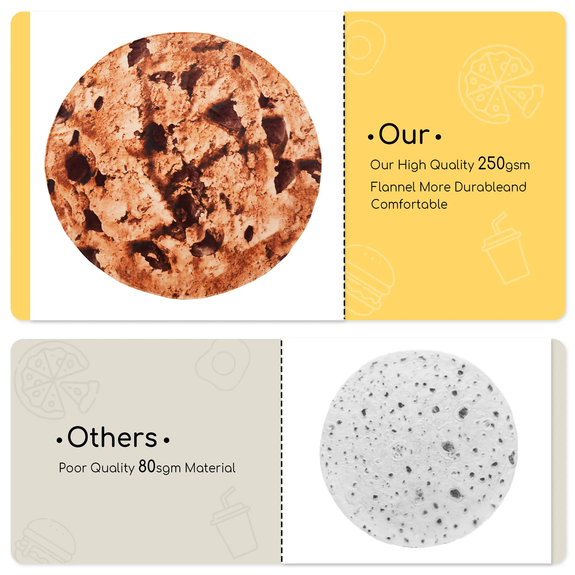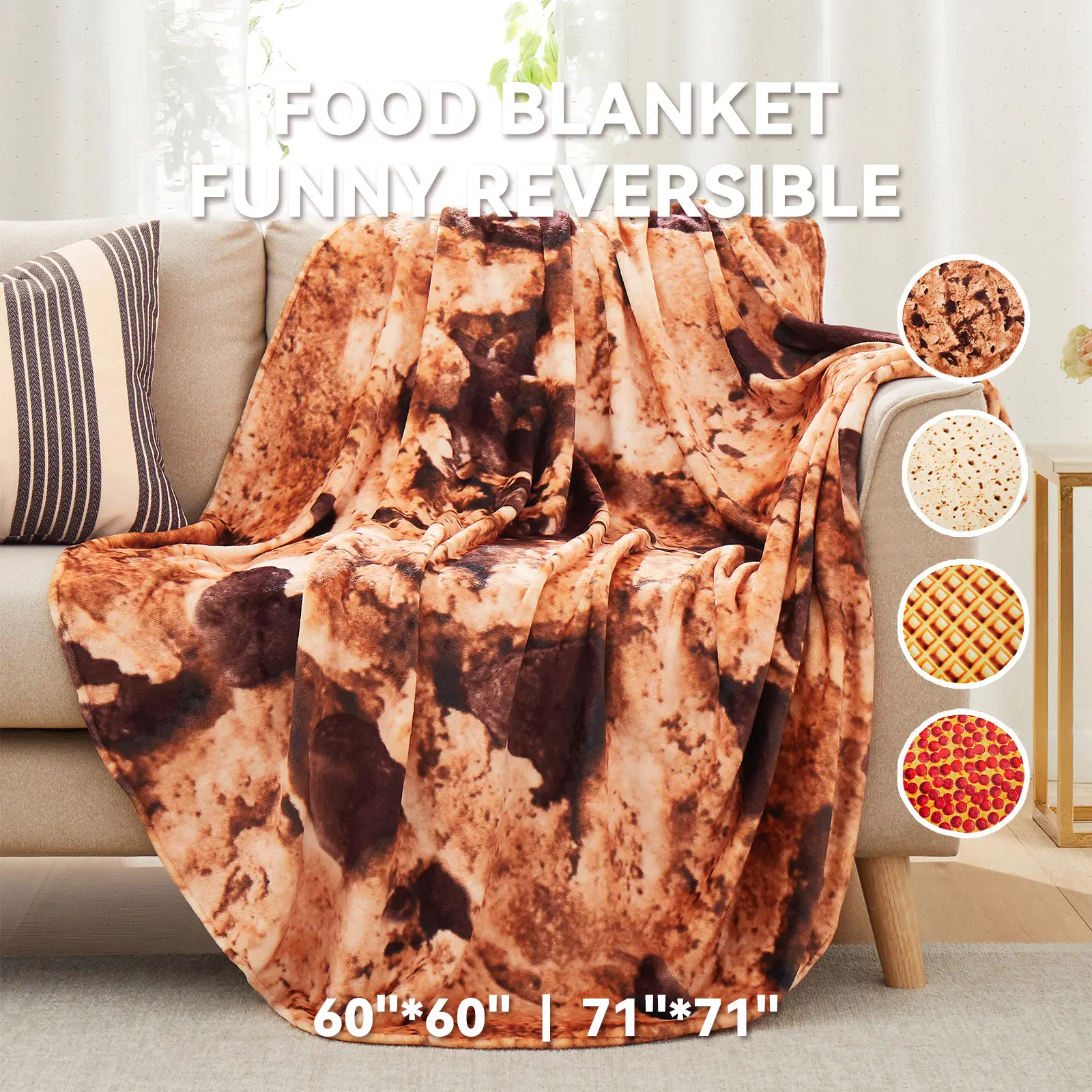 Dive into the whimsical world of our food-themed blankets! These delightful designs are perfect for bedtime stories, movie nights, or playtime forts. They ignite your child's imagination and provide comfort. Choose from cookie, pizza, waffle, or pancake patterns to make bedtime exciting.