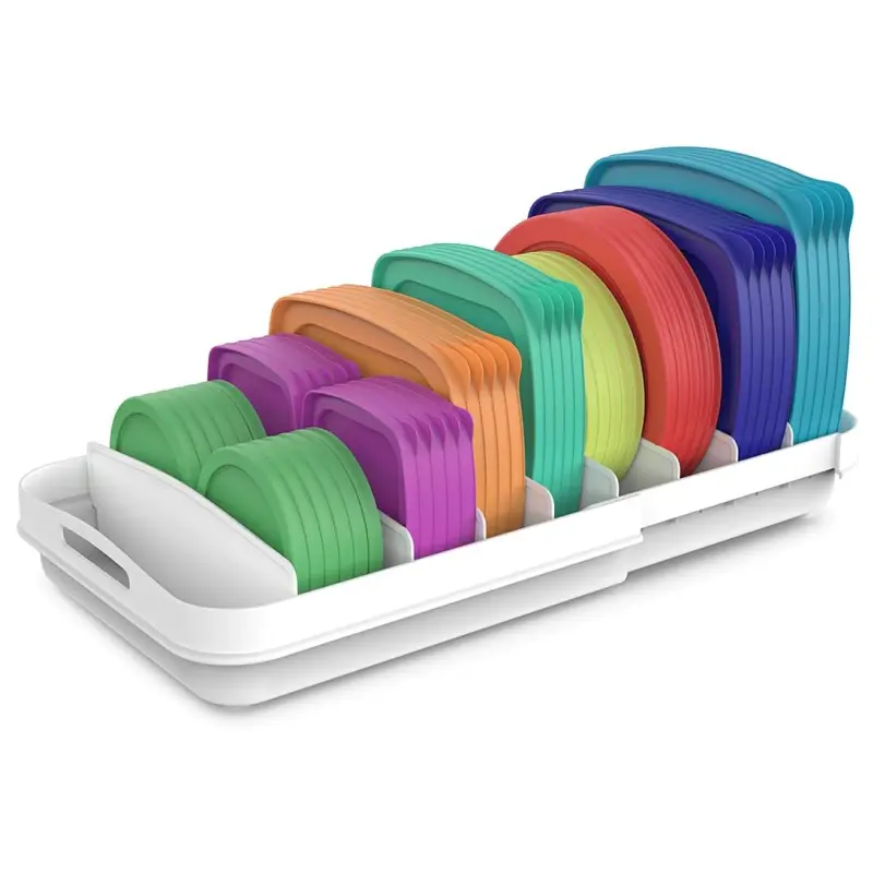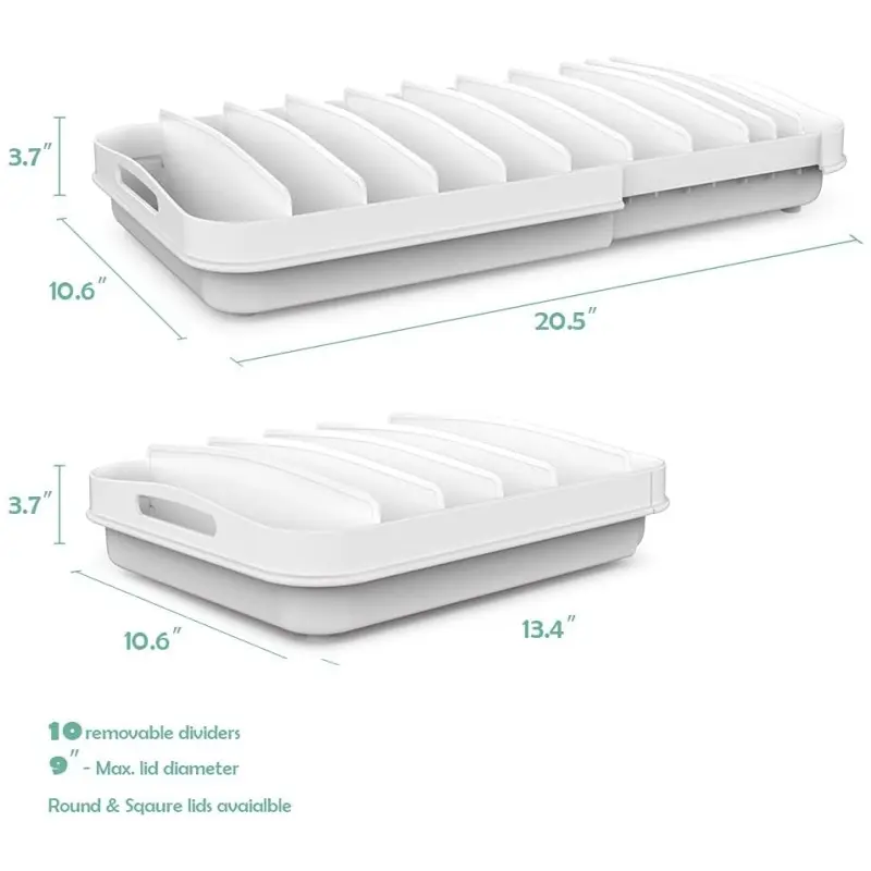 ·Cabinet Organizer of different sizes of container lids, compatible with Rubbermaid lids, Tupperware lids, Pryx lids. The biggest diameter of lids is 9''.