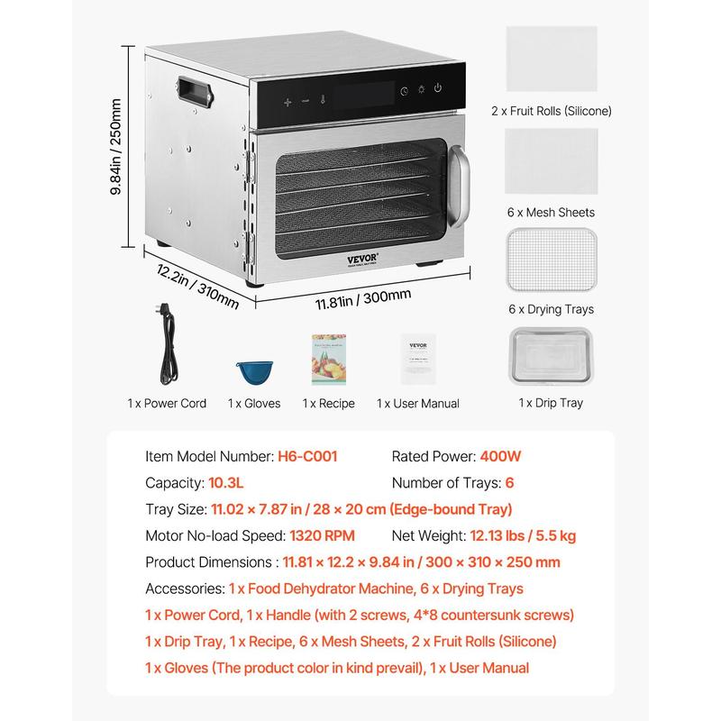 ·Edge-bound Trays: The beef jerky dehydrator machine comes with six 304 stainless steel trays (11.02 x 7.87 in / 28 x 20 cm) for direct contact with food with peace of mind. The upgraded curved edge-bound design is smooth, preventing injury to hands, easy to clean, and can support heavy loads