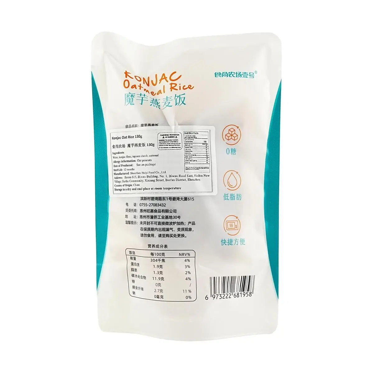 ·Konjac oat rice, only 60% the calories of white rice, effectively reduces calorie intake, ideal for healthy eating