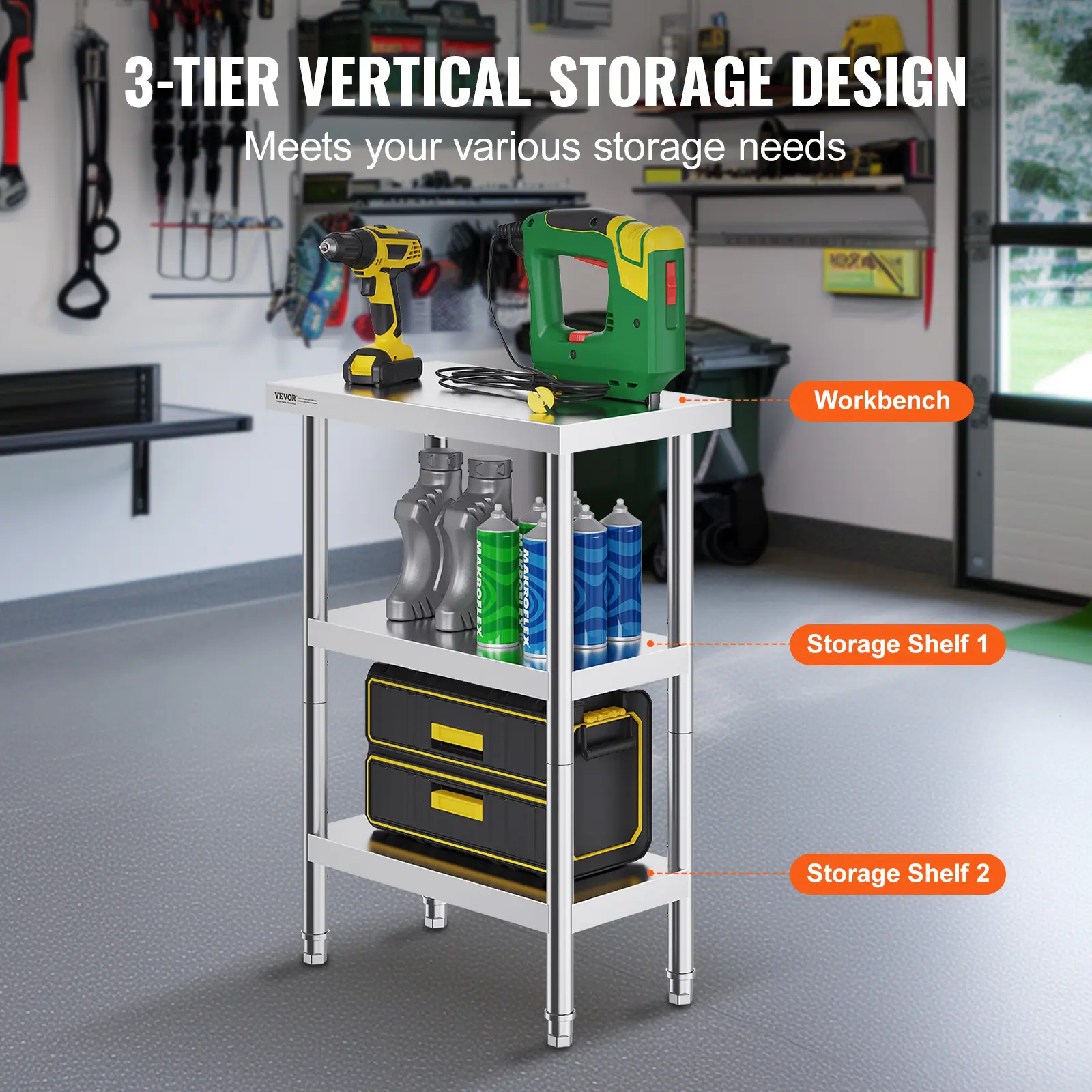 • Large Storage Capacity: The 3-tier design offers ample storage space, allowing you to make the most of your storage needs. With adjustable shelves, you can easily raise or lower the height by adjusting the screws to fit the size of the items you need to store.