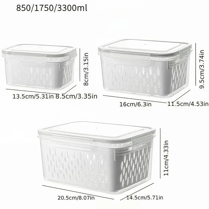 Clear, Storage Box*3 & Drainer*3