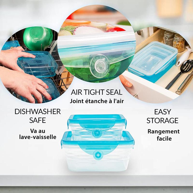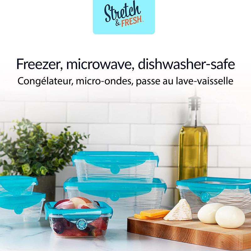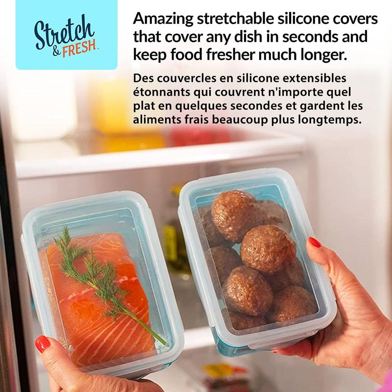AIR TIGHT and LEAK-RESISTANT: Stretch and Fresh is the amazing, new food storage container that uses food-grade silicone-lined lids to shut in moisture and eliminate air oxidation, sealing in freshness and allowing for food to last longer than the traditional plastic cling-wrap and other standard food storage containers. What’s more, the Stretch and Fresh also resists leaking. Store soup, or sauces for later uses without completely messing up your refrigerator with spills and leaks!
