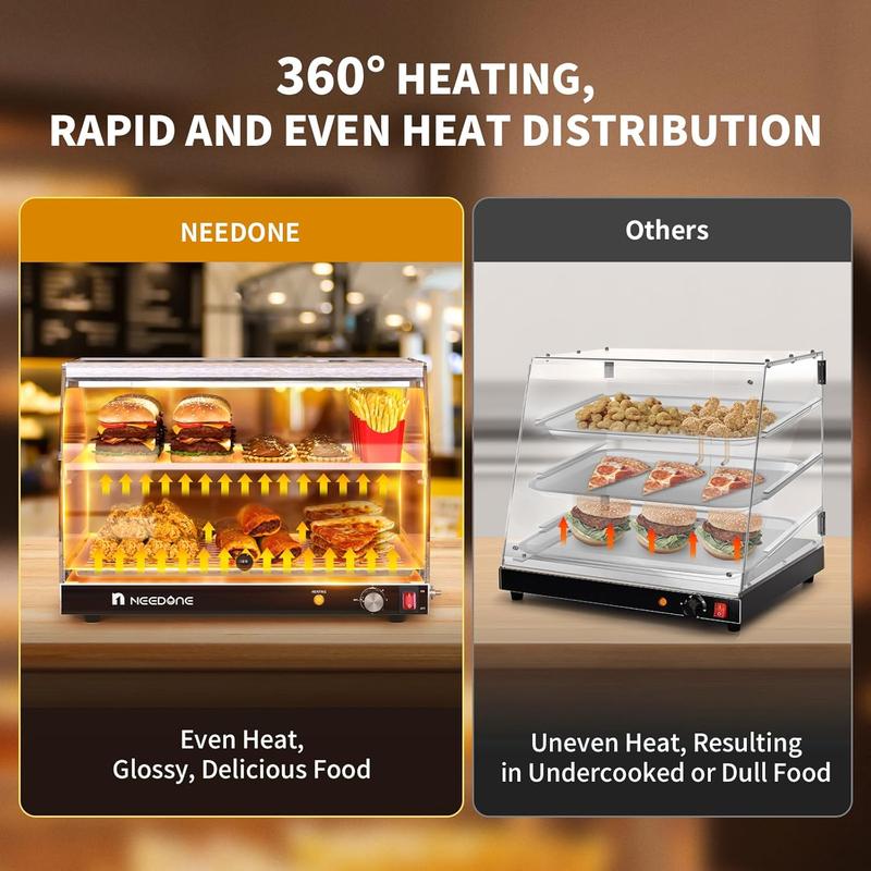 ·Versatile Use Cases: Perfect for professional and personal settings, this food warmer adapts effortlessly to cafes, bakeries, pizzerias, buffets, fast-food restaurants, convenience stores, and party setups. It's the ideal addition to showcase and maintain the quality of your delicious creations. For any inquiries, feel free to reach out for dedicated support
