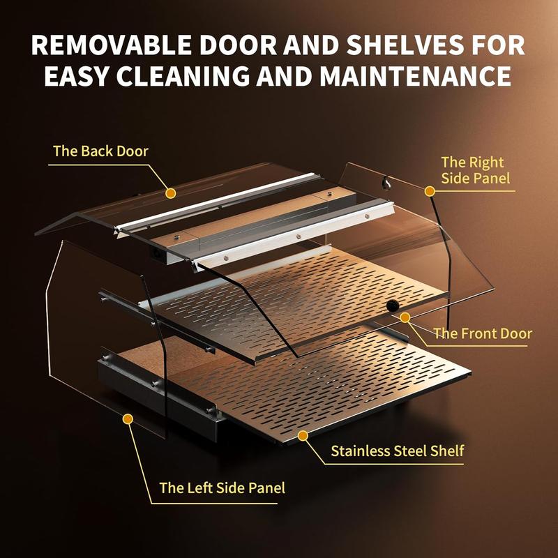 ·Premium Construction: Built from durable 304 stainless steel and robust acrylic panels, this food warmer Pastry Display Case combines long-lasting performance with sleek aesthetics. Non-slip feet keep the device stable, while the perforated bottom tray facilitates heat circulation for even warming and easy cleaning