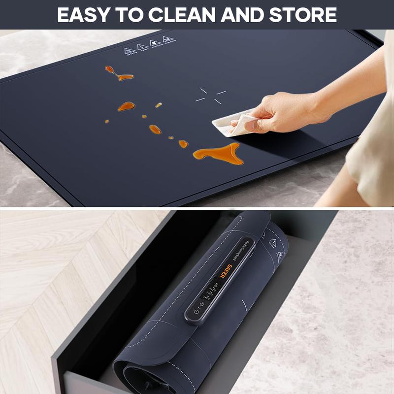 Nano Coated Silicone for Easy Maintenance: Saker Warming Mat made with Silicone, this Food Heating Mat offers superior ease of cleaning, remains free from unwanted odors, and maintains its durability over time. The non-stick surface ensures quick and hassle-free cleanup. Additionally, the tray features a practical buckle mechanism, allowing you to roll it up and secure it neatly for compact storage.