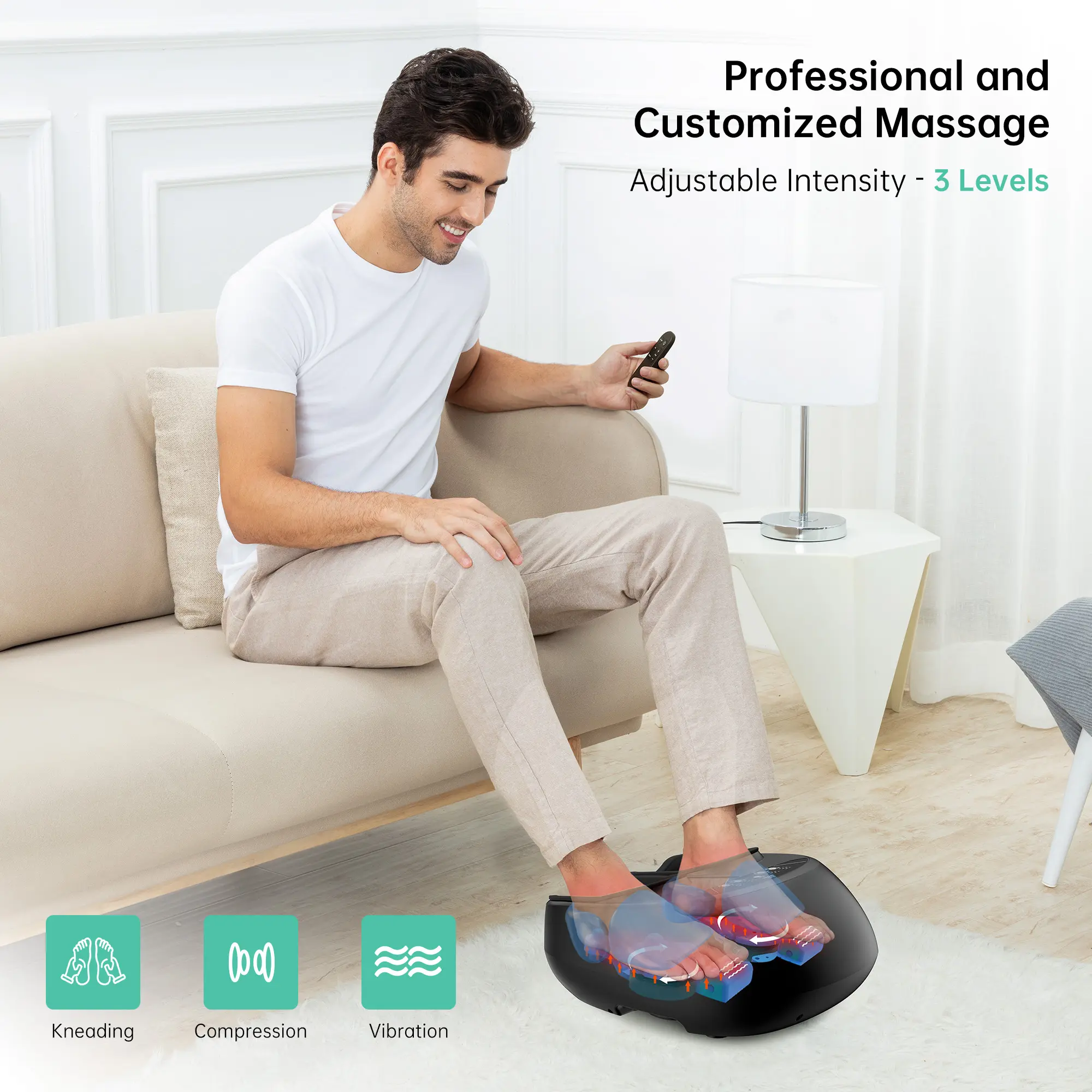 ·【Compression massage】The heated feet massager with 3 adjustable levels of compression massage on the instep,heel and ankles. It works better when combined with the kneading, heat functions to further relax foot pain. Recommended to start with a low intensity for the first time to avoid the feeling of hurt. After trying a few massages, the pain in your feet will lessen and you will feel better
