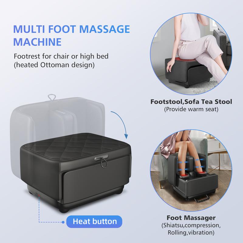 ·Unique heated Ottoman design, Comfier foot and calf massager can be folded to be a luxury ottoman foot rest (19.6”*15.3”) for home living room. It can hold your feet and legs up, which makes you feel more comfortable. The surface of the ottoman has an optional heating function that provides you with a perfect warm seat, also helps warm & relax your feet and legs, while you work in the office or at home.