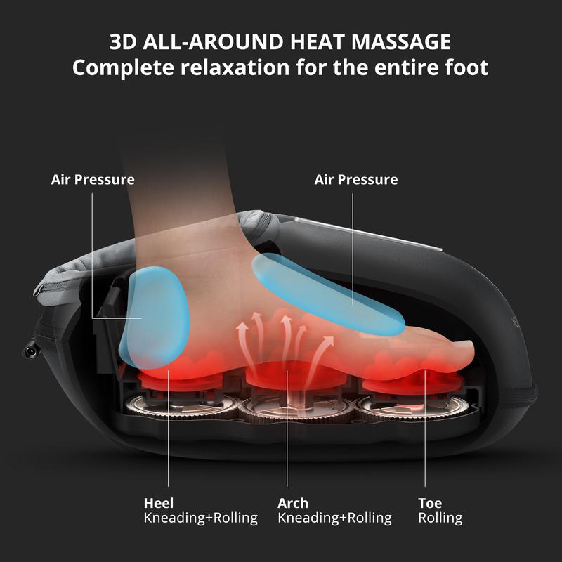 I bought this for my boys to give to their there dad for a fathers day gift. He says it feels good and does work with a tight compress and warmth to the foot but it only massages the bottom of the foot. He is on his feet for several hours a day and would love for it to massage to WHOLE FOOT. 7/10