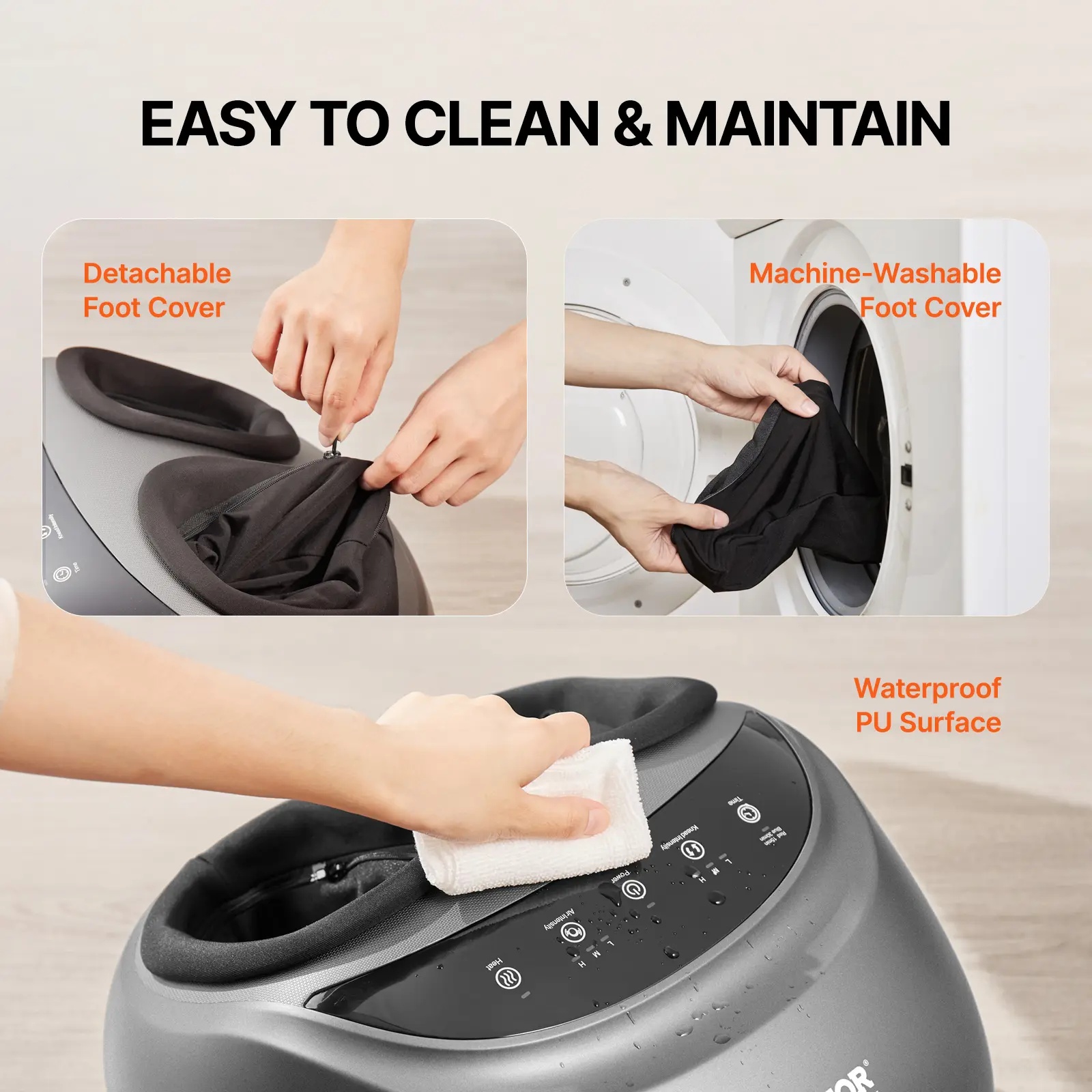 • Enjoy a Peaceful Massage: Operating at a noise level as low as 50 dB, this foot massager lets you experience a quiet, relaxing massage at home or in the office. Plus, the detachable, machine-washable cover and waterproof PU exterior make daily cleaning effortless.