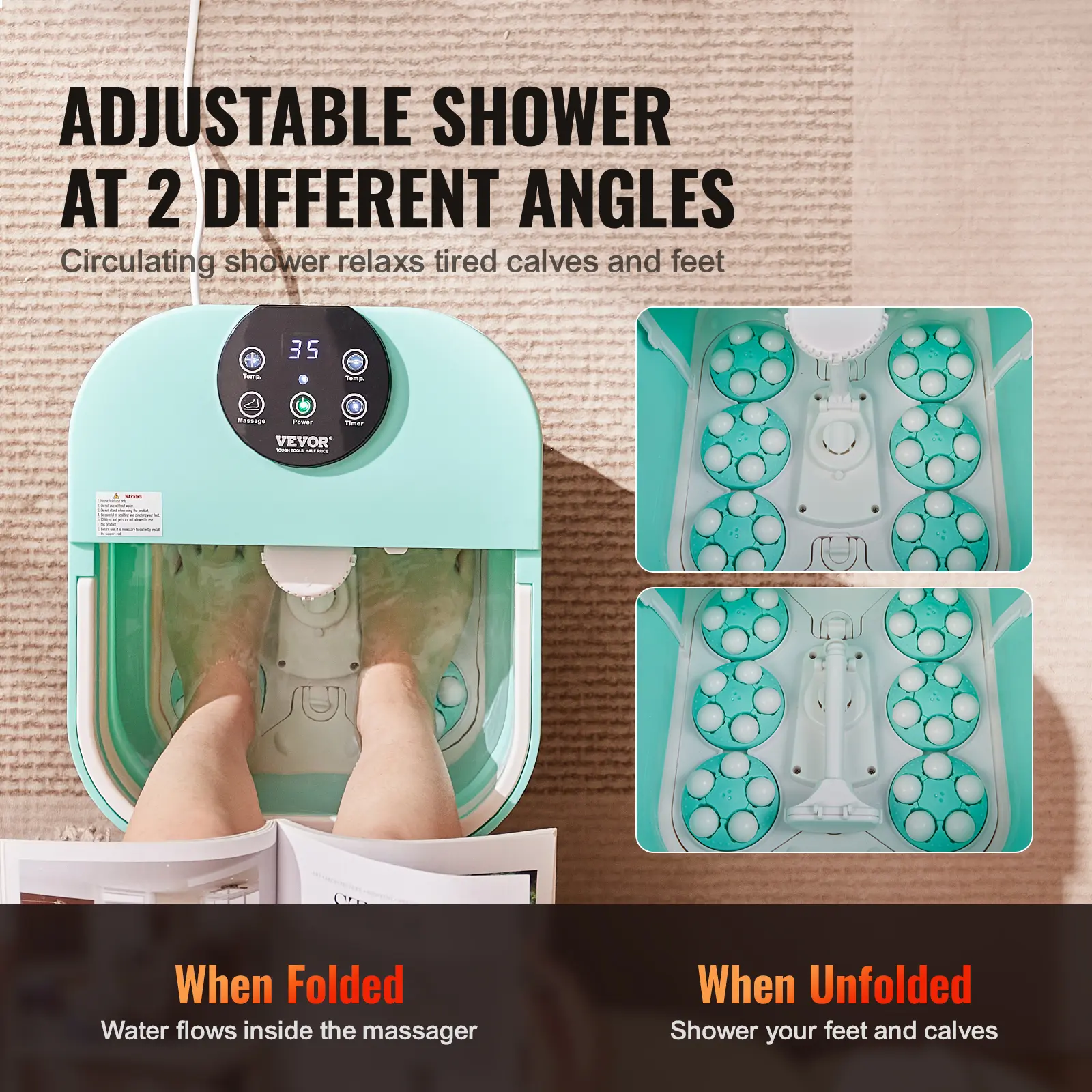 • Foldable & Adjustable Shower Angle: With a quick-folding design, the collapsible foot spa massager with heat folds down to just 6.7 inches, easy to store and space-saving. It also features an adjustable shower head with 2 different angles, providing water flow that covers both your calves and feet, soothing tired muscles, relieving tension, and promoting circulation.