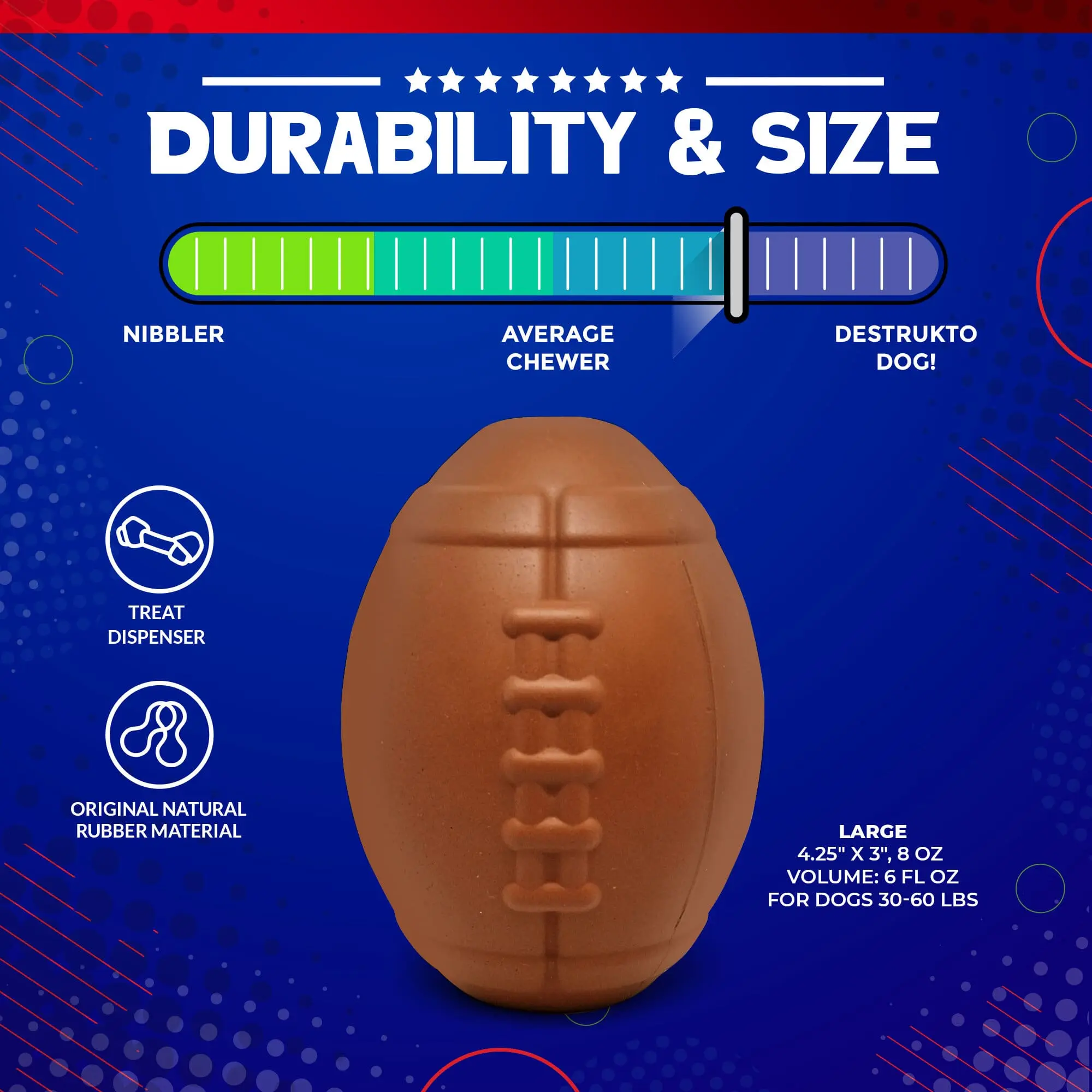 The Football Toy is designed for "power chewer" dogs. It withstands abuse effectively.