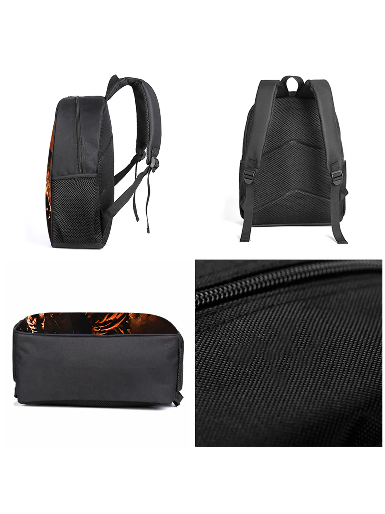 Red spider pattern printed double backpack with headphone jack Casual printed backpack