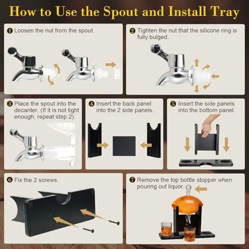 Β·Ideal Capacity - The whiskey decanter is 1400 mL /47oz and spout to easy dispense, ideal for sharing a drink with family or friends, when you are in gathering, party, game day or holiday party, enjoy the drinks and happy moment