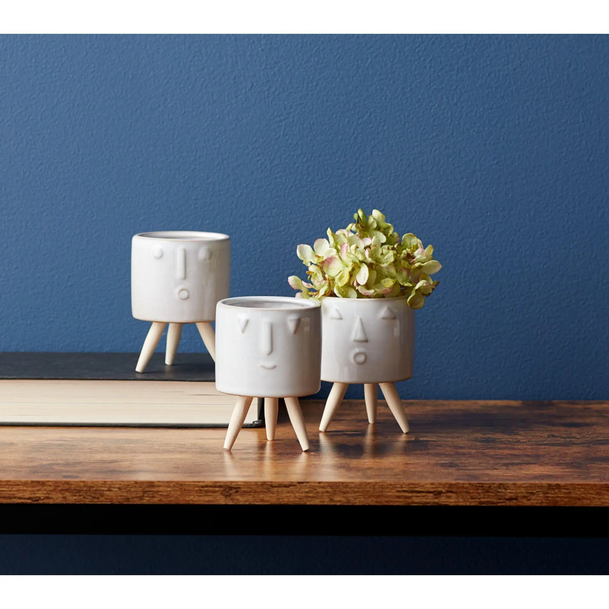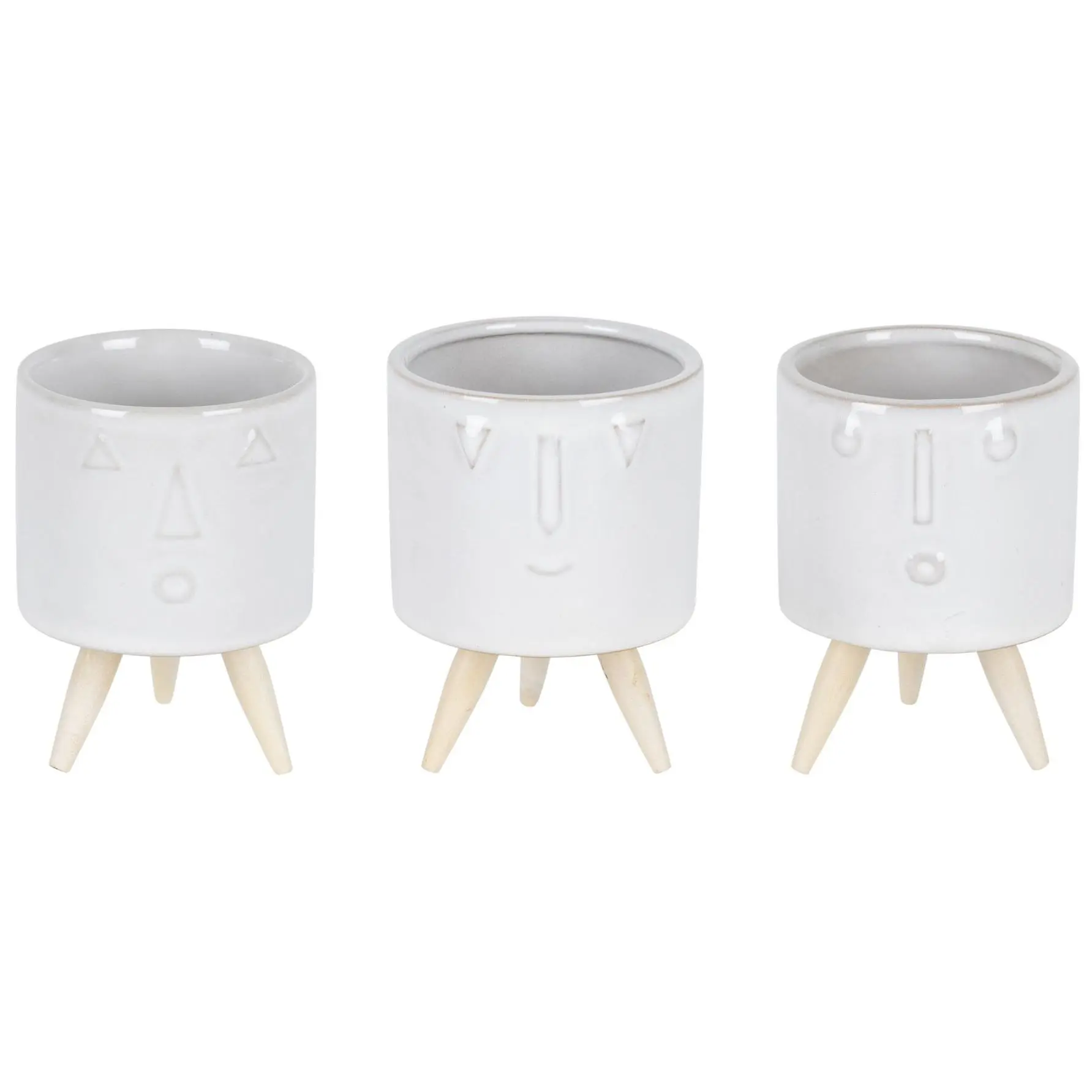 Give your home decor a dash of whimsy by setting out your favorite plants in this trio of footed porcelain planters, each fashioned with a fun smiley face. From Melrose International.