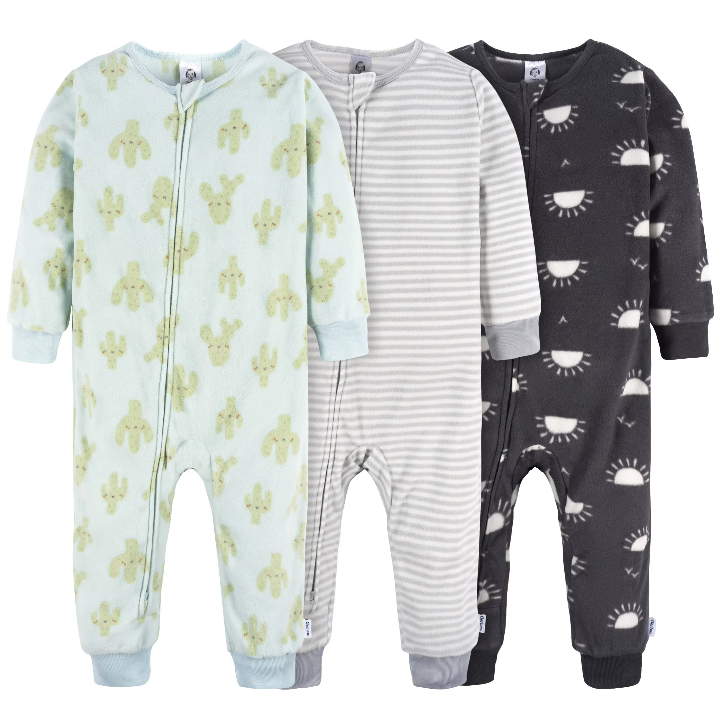 A world of comfort awaits! Our fleece pajamas, made for your infant or toddler, are made from ultra-soft microfleece for a cozy bedtime experience. Featuring a convenient two-way zipper and neckline zipper protector, these footed pajamas make dressing and diaper changes a breeze. Each pack offers a variety of adorable designs for fun bedtime memories. Our essentials have been independently certified with STANDARD 100 by OEKO-TEX® so that you don’t have to worry about harmful substances in your baby’s wardrobe. Flame resistant for child safety. Pack includes three fleece pajamas.