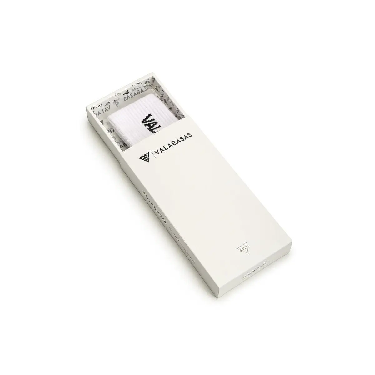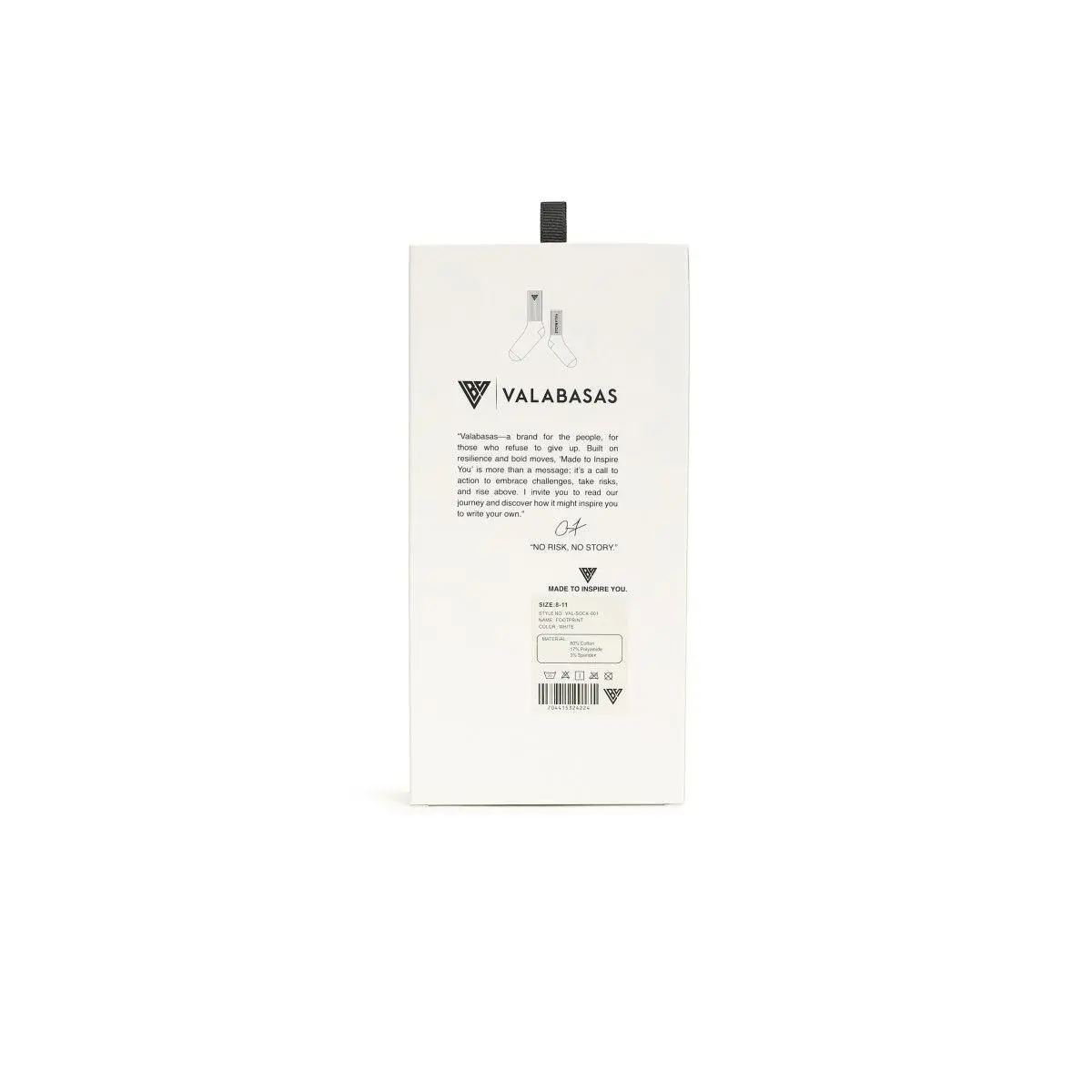 Step into your day with comfort and confidence. The Footprint White Socks bring a bold foundation to your fit, featuring the signature VALABASAS logo and emblem knit directly into the upper cuff for elevated streetwear energy.