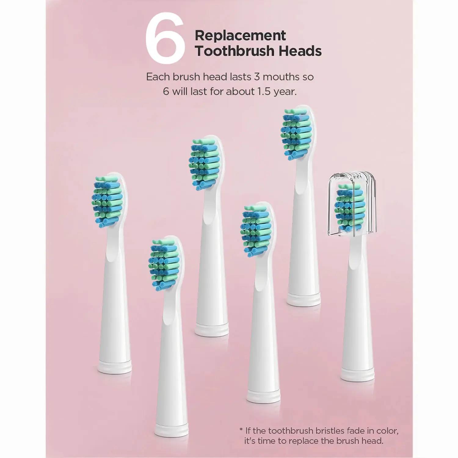 【Great Choice for Family with 6 Replacement Heads】Combination of both strong mode and gentle mode for adults, children/kids and also senior person. Mini head for deep and precise clean. Medium soft bristles to avoid abrasion to teeth, enamel and gums. Brush head with rings of different colors easily allows sharing of the handle with family. Anti-slip handle. Protective bristle cover to have the brush easily included in travel bag.