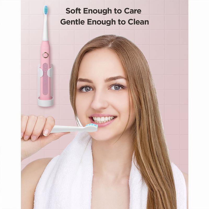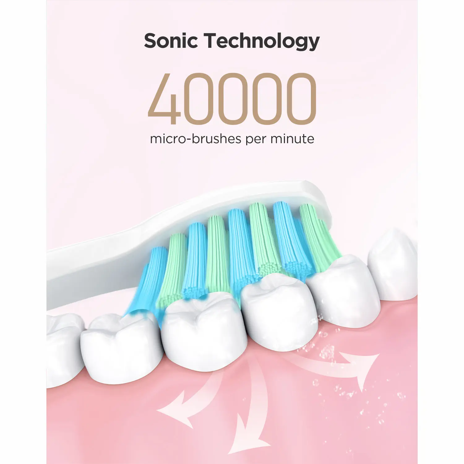 Our electric toothbrush has 40000 strokes/min. Powerful cleaning removes up to 99% more plaque within few days,enhance oral hygiene and achieve noticeably whiter teeth brighten your smile in just 14 days.