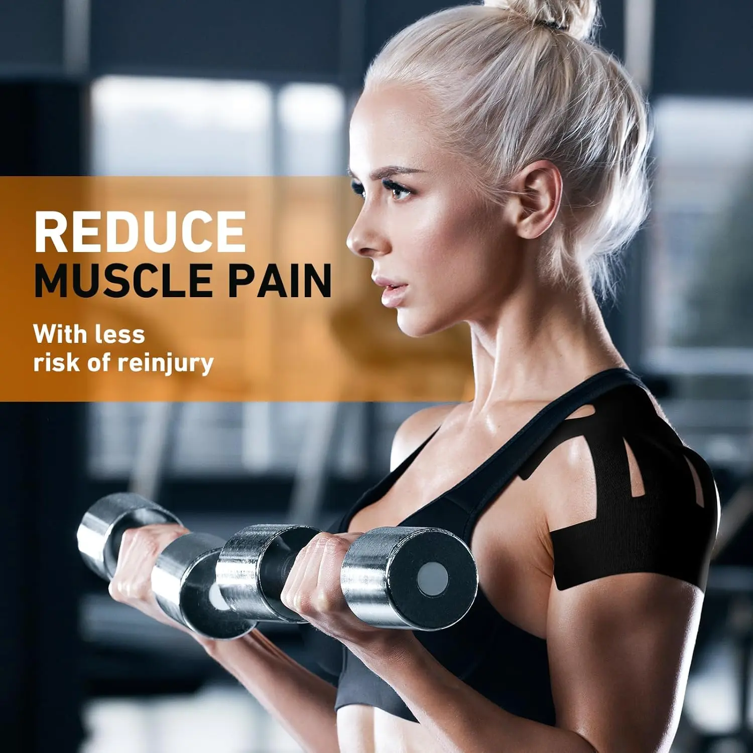 ·Pre-Cut Strips: Our kinesiology tape is pre-cut into precise strips, simplifying application. Wrap around your shoulders for quick support and protection. Ideal for athletes needing immediate shoulder support.