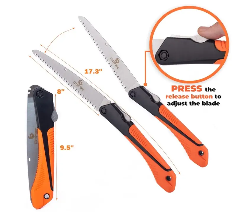 This saw is a must-have for anyone involved in outdoor activities. Its versatile capabilities make it a valuable tool for tree pruning, camping, gardening, and hunting. The ergonomic handle ensures comfort, while the folding design makes it easy to carry.