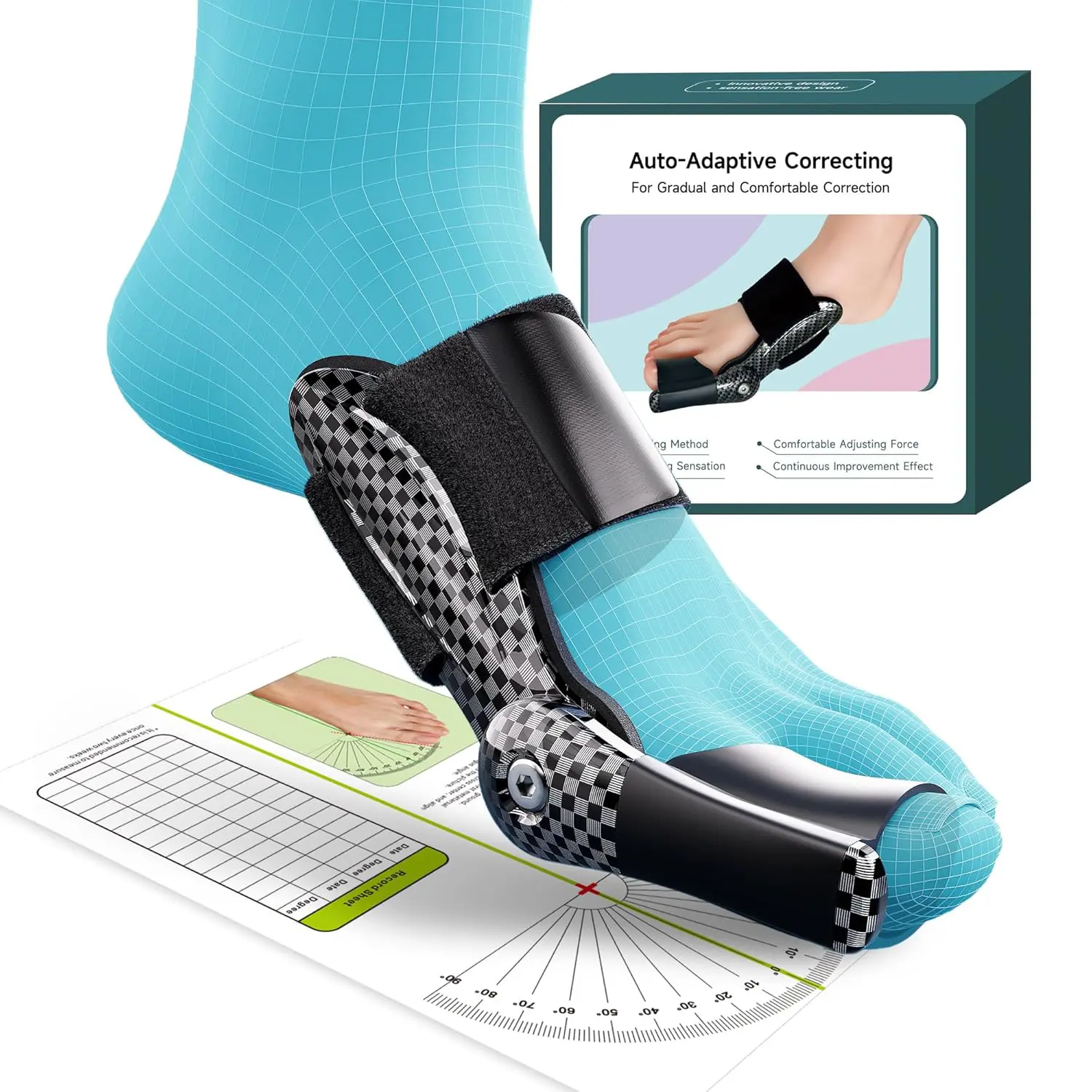 ·Progress Tracker: The big toe straightener comes with a protractor measurement card to make it easy to record and compare progress during the toe correction process. This helps users to understand the process and its effects.
