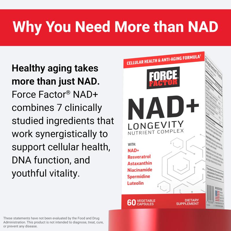 ·NEXT-GENERATION ANTI-AGING SUPPORT: Force Factor NAD+ Longevity Nutrient Complex combines 7 scientifically backed ingredients like NAD+, resveratrol, and spermadine to optimize cellular energy, repair, and longevity, all in one convenient supplement.
